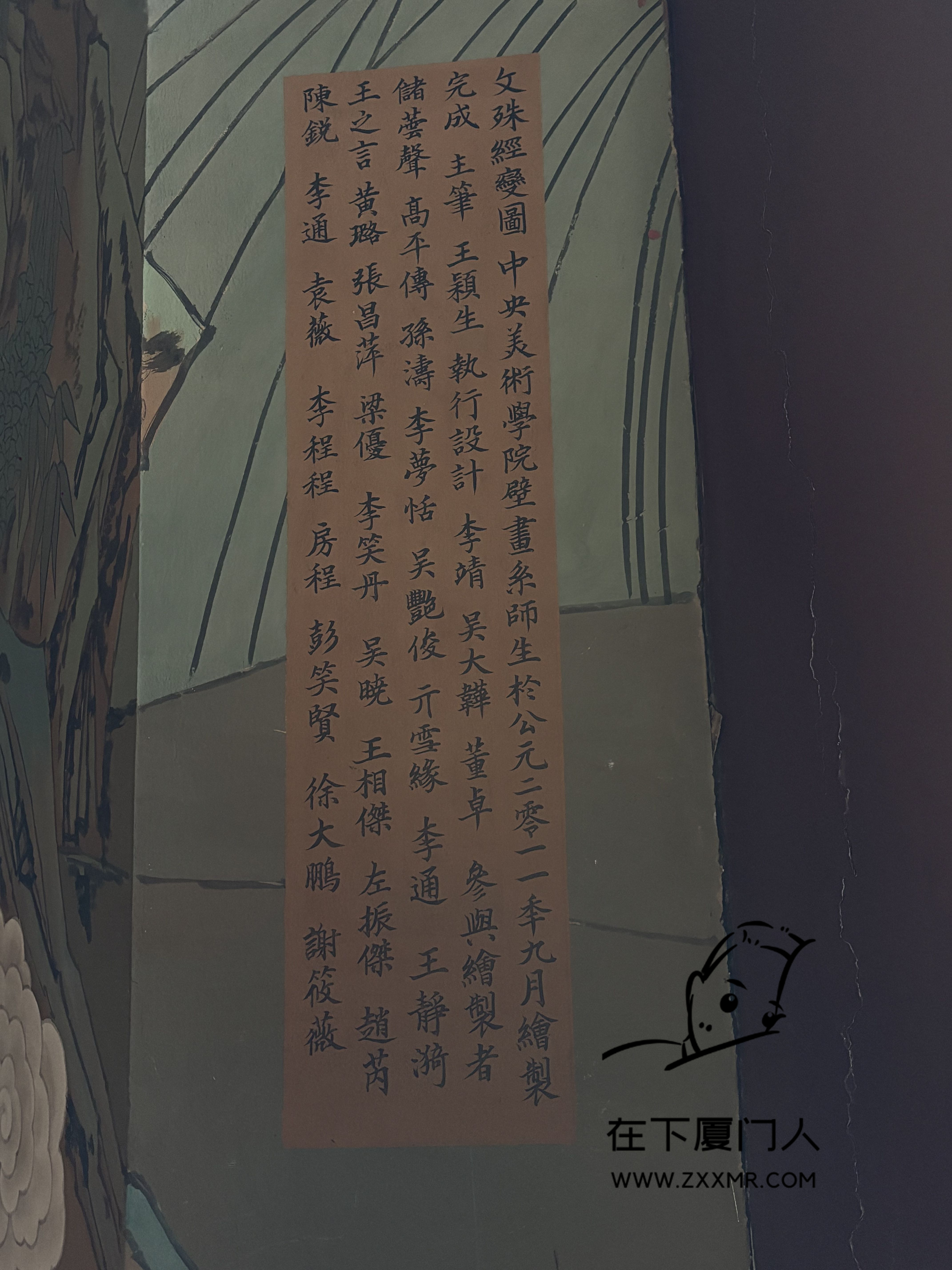 华严寺里每处壁画的结尾都记录该壁画的作者信息,文殊阁里壁画来自中央美术学院壁画系师生于2011年9月绘制,主笔王颖生、执行设计李靖、董卓等。