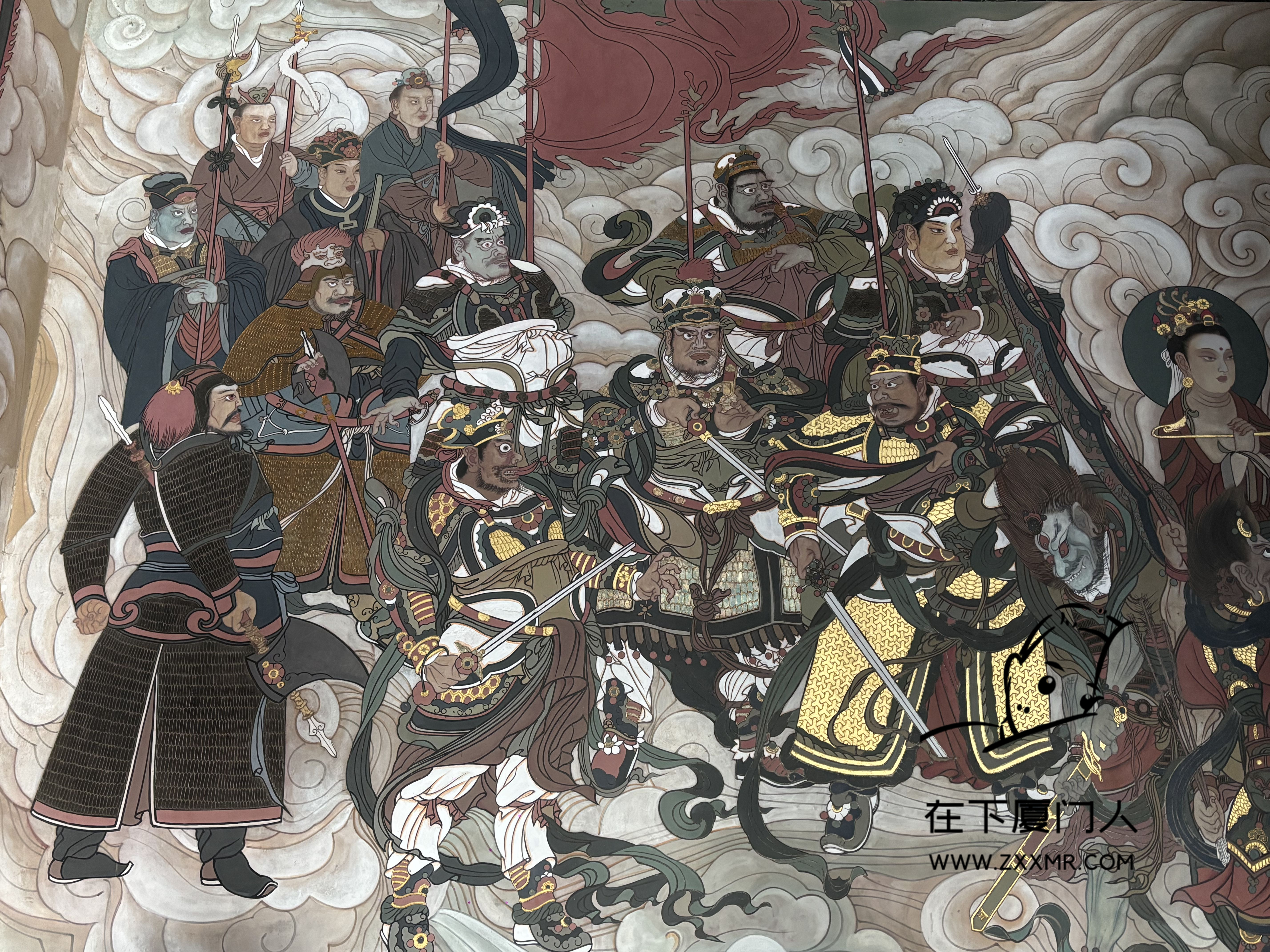 华严寺药师殿内环壁画绘有佛教中药师佛(药师琉璃光如来)所发的十二大愿。这些誓愿是药师佛在修行菩萨道时,为救度众生脱离疾苦、获得现世安乐与究竟解脱而立下的根本誓愿,出自《药师琉璃光如来本愿功德经》。