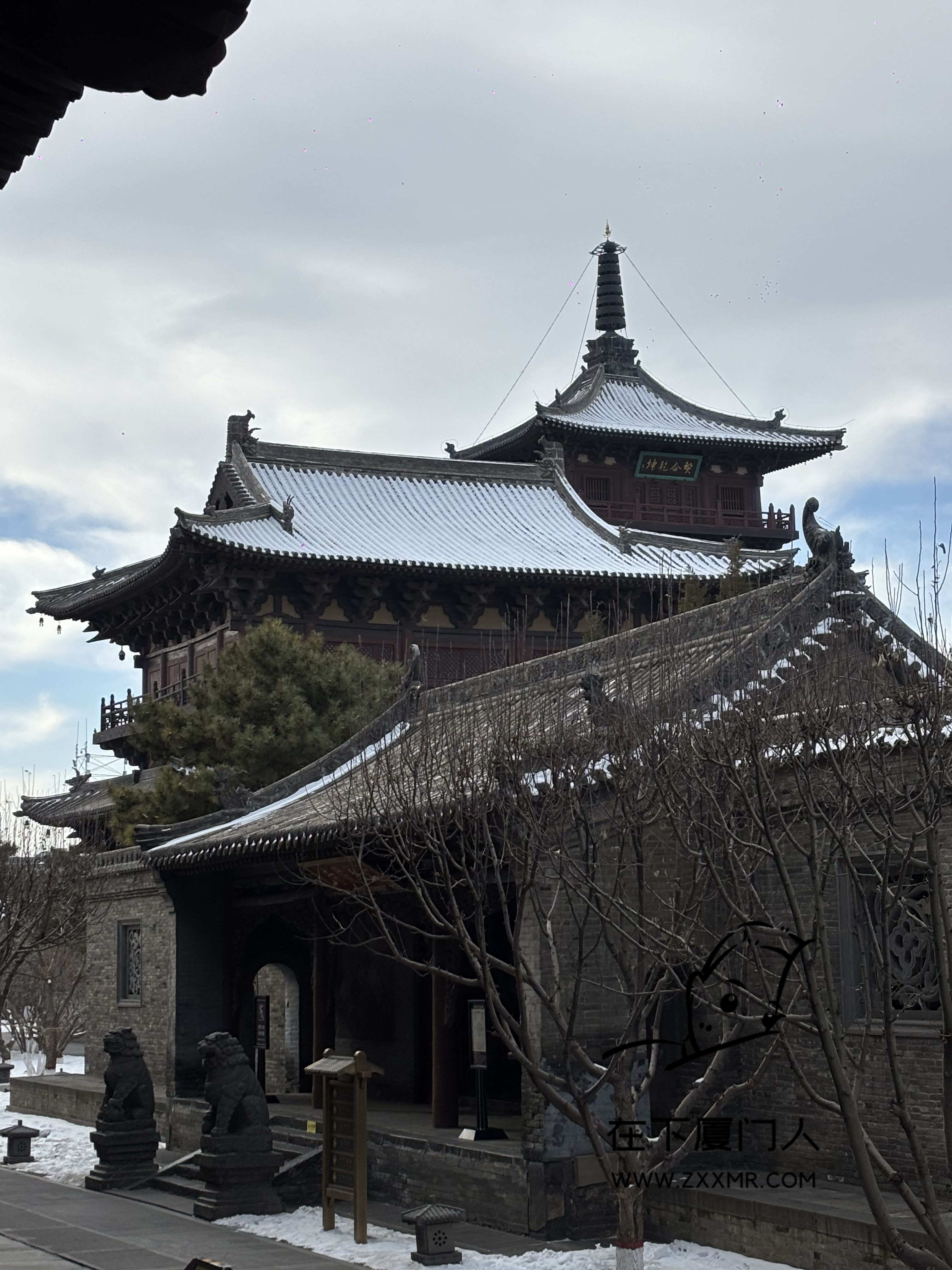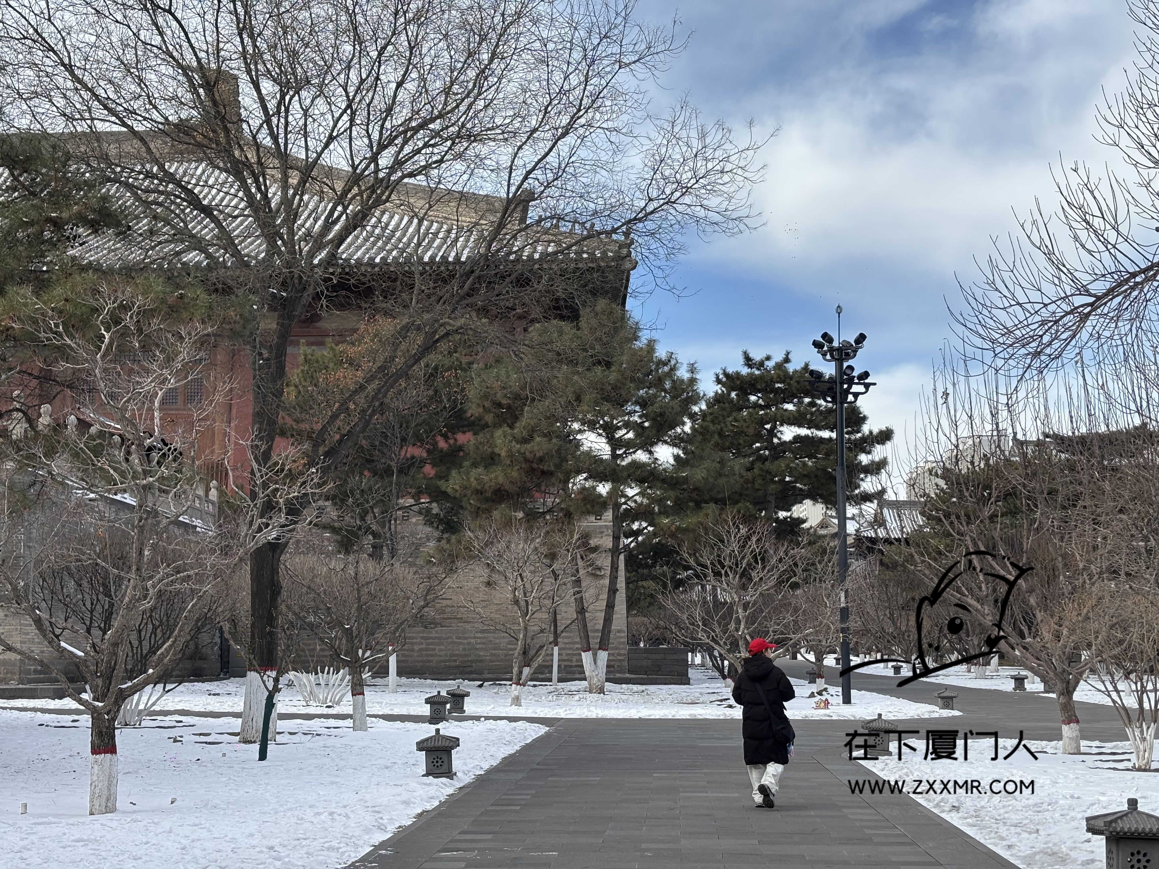 虽然已是雪后来的大同古城,但仍有不少积雪散落在华严寺的各个角落,给寺院增添了几分韵味。