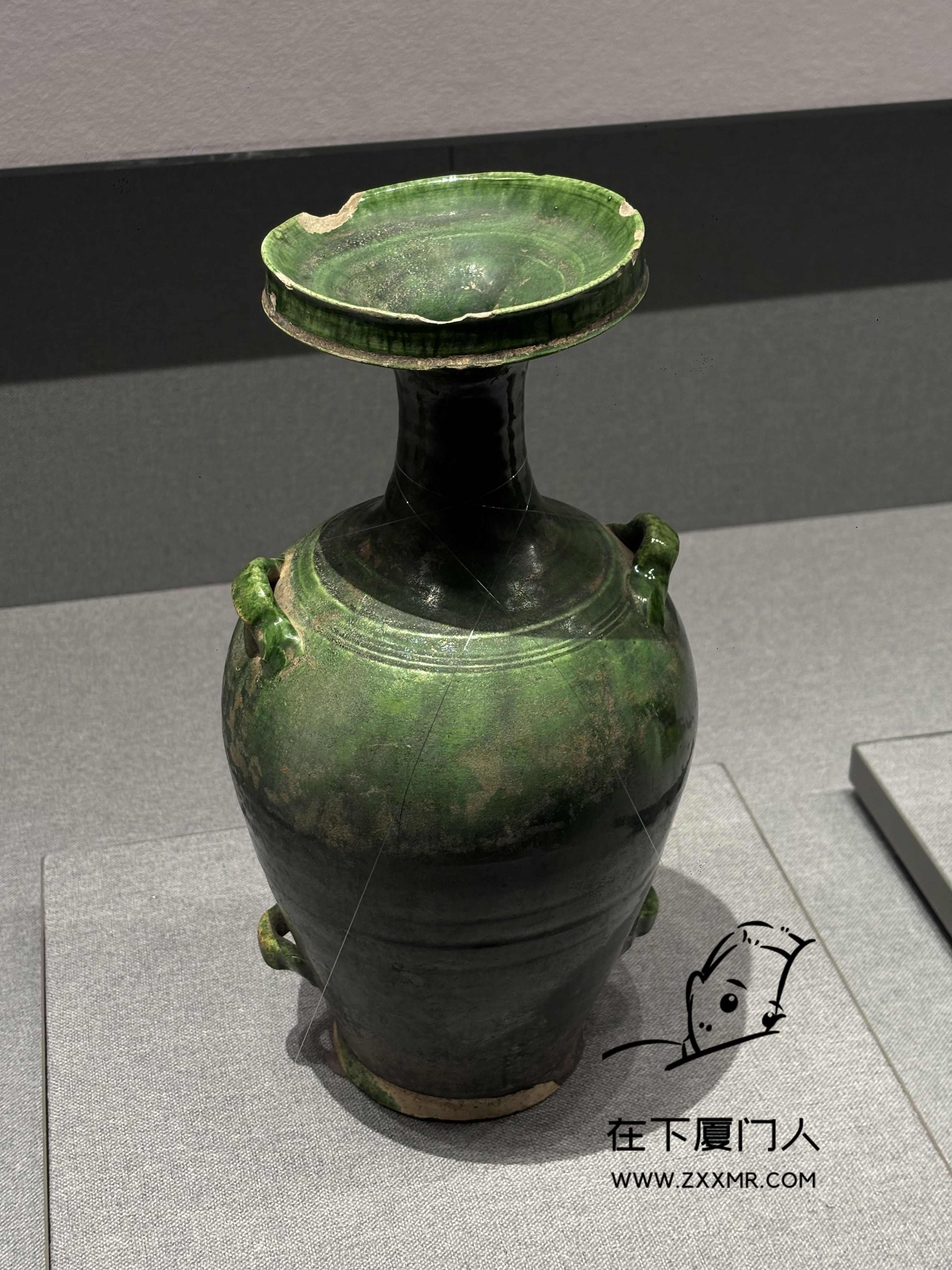 绿釉盘口穿带瓶(辽、通辽市库伦旗奈林稿辽墓出土、内蒙古博物院藏)