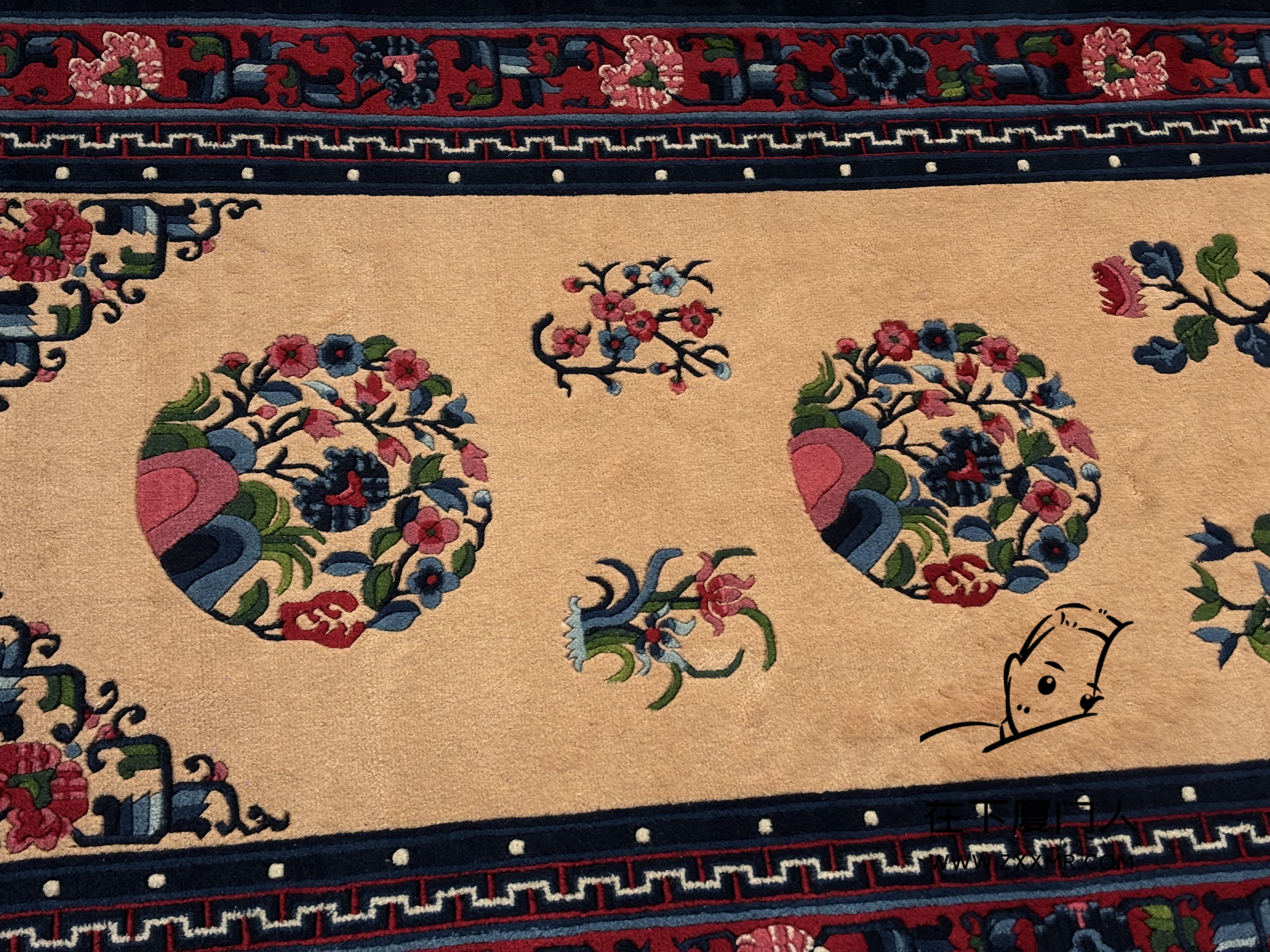 内蒙古巴尔虎部紫底花卉织锦缎立领右衽起肩马蹄袖库锦边饰束腰女袍