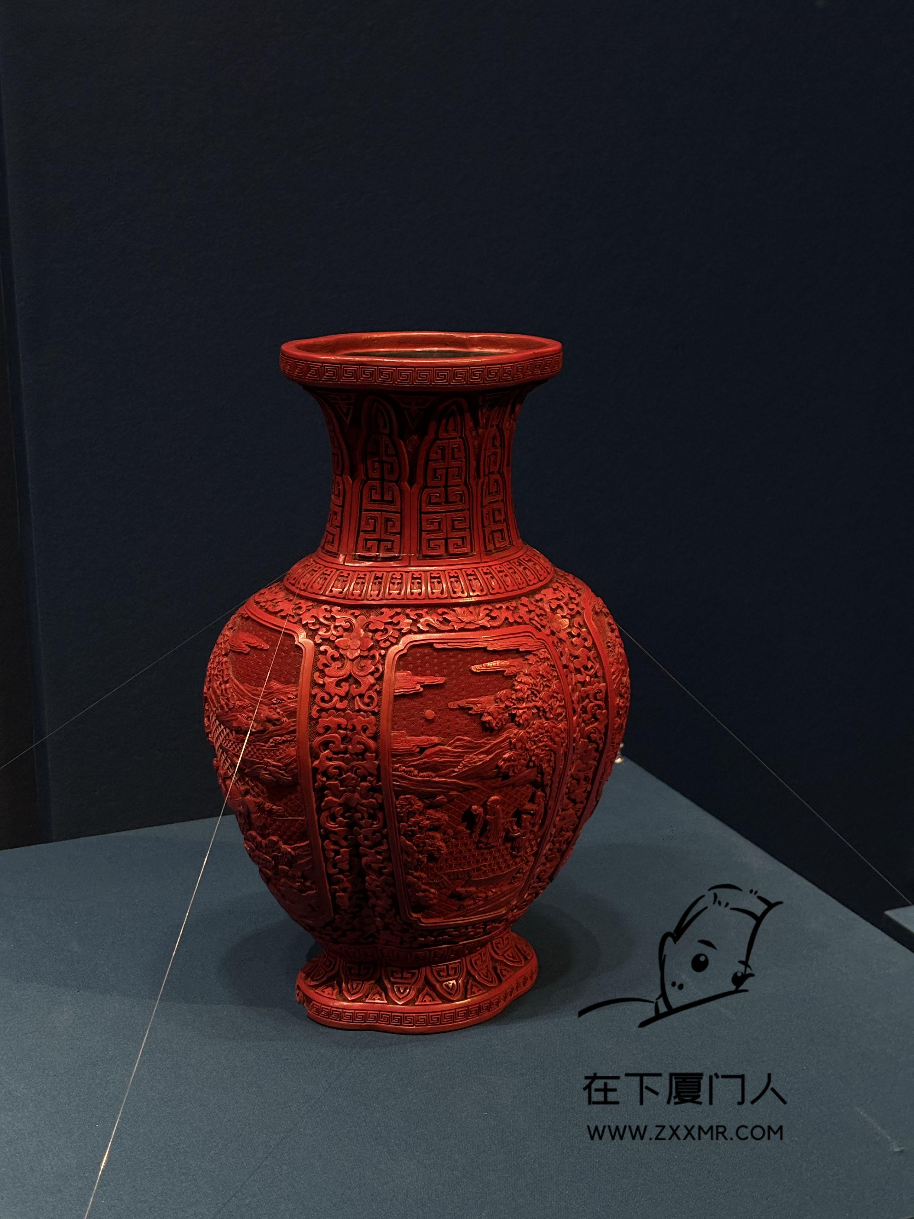 雕漆开光山水人物海棠式扁瓶(清代、二级文物、内蒙古博物院藏)
