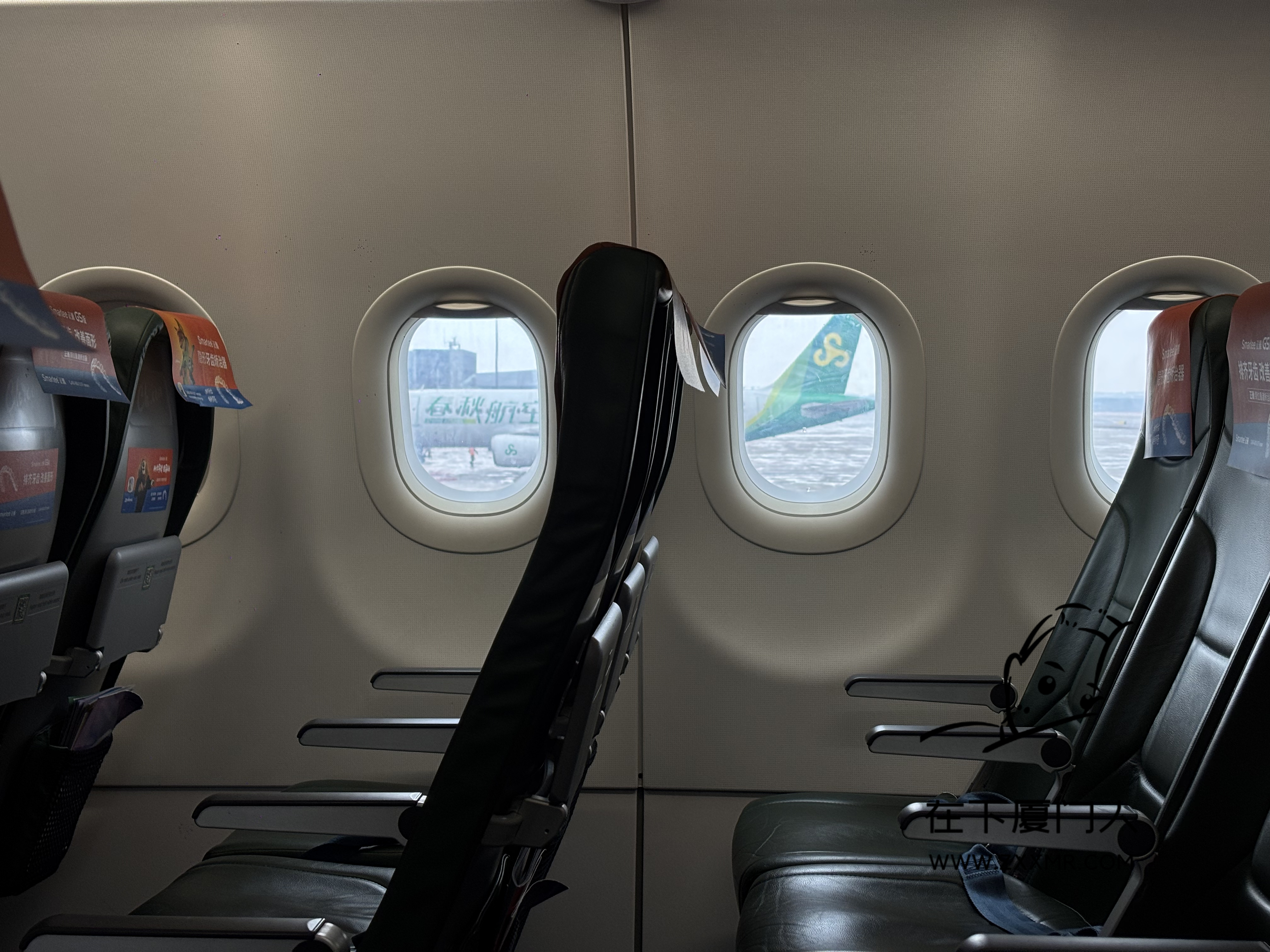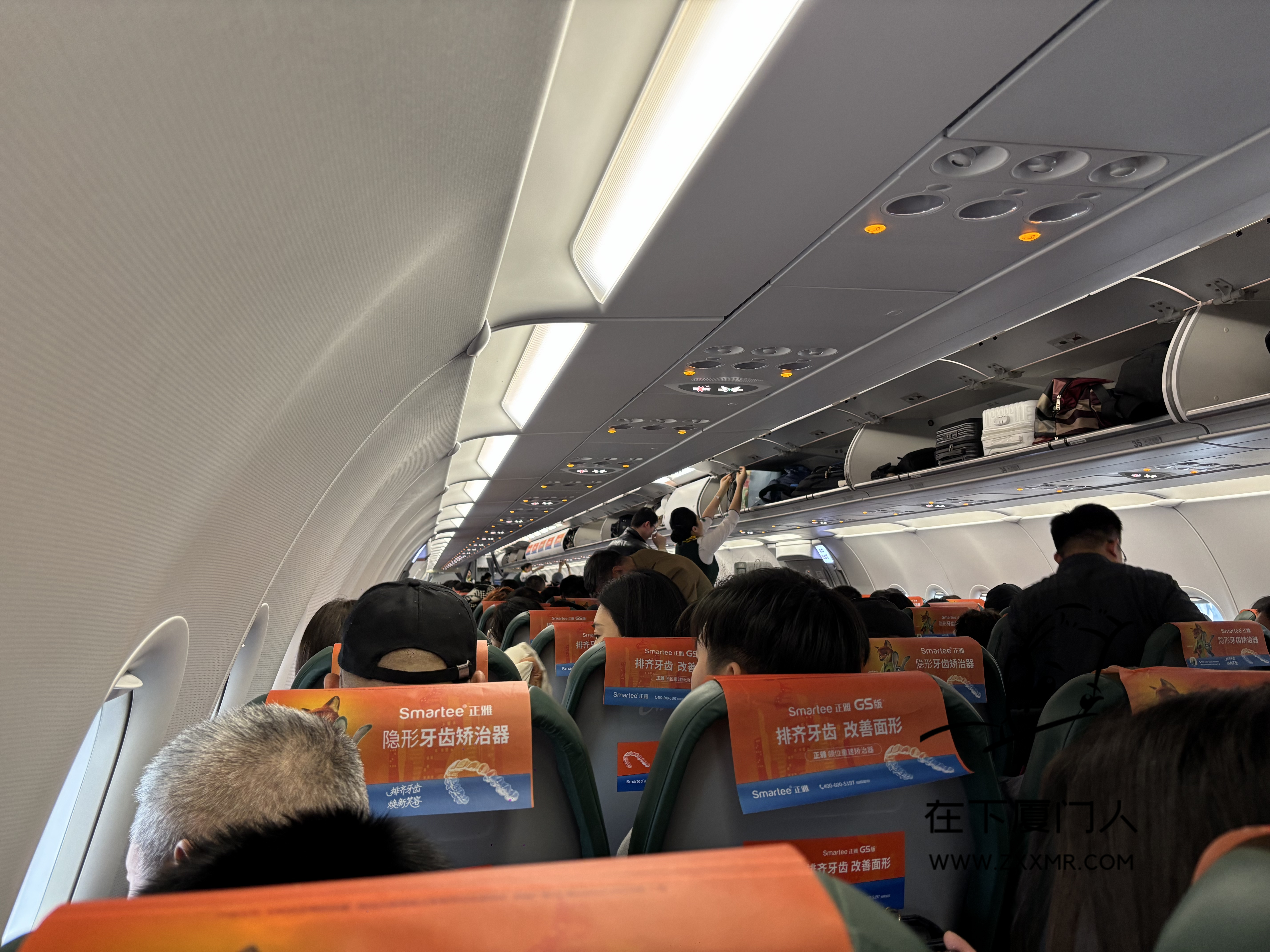 12时25分,航班开始登机,今天搭乘的是A321机型,春秋把单通道的A321设置了近240个座位的布局,一度要赶超其他航司的双通道A332机型的客座布局。