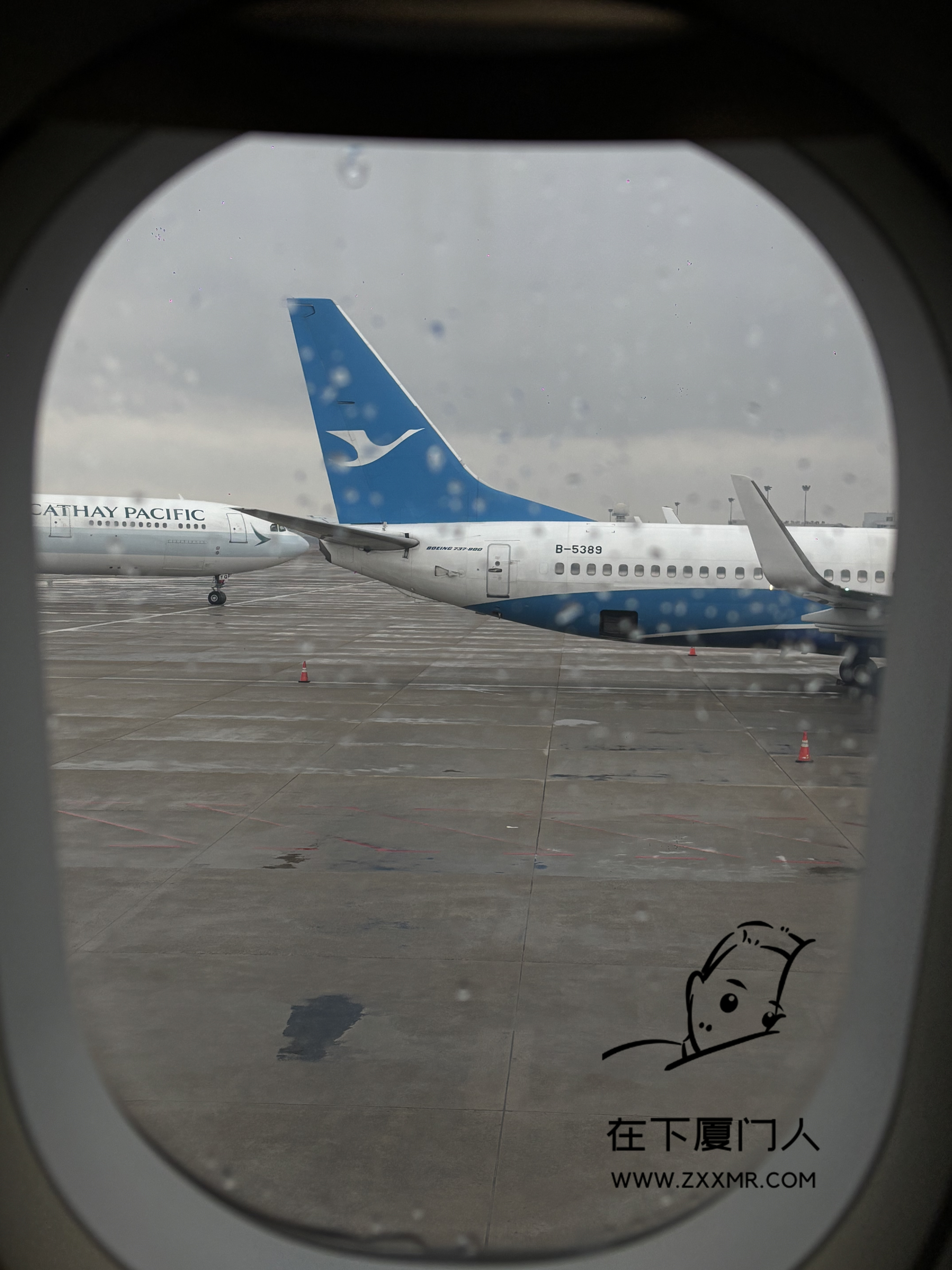 上午出门时,外面还在下着毛毛雨,这会马上就要登机了,外面雨停了,天空灰蒙蒙的一片。