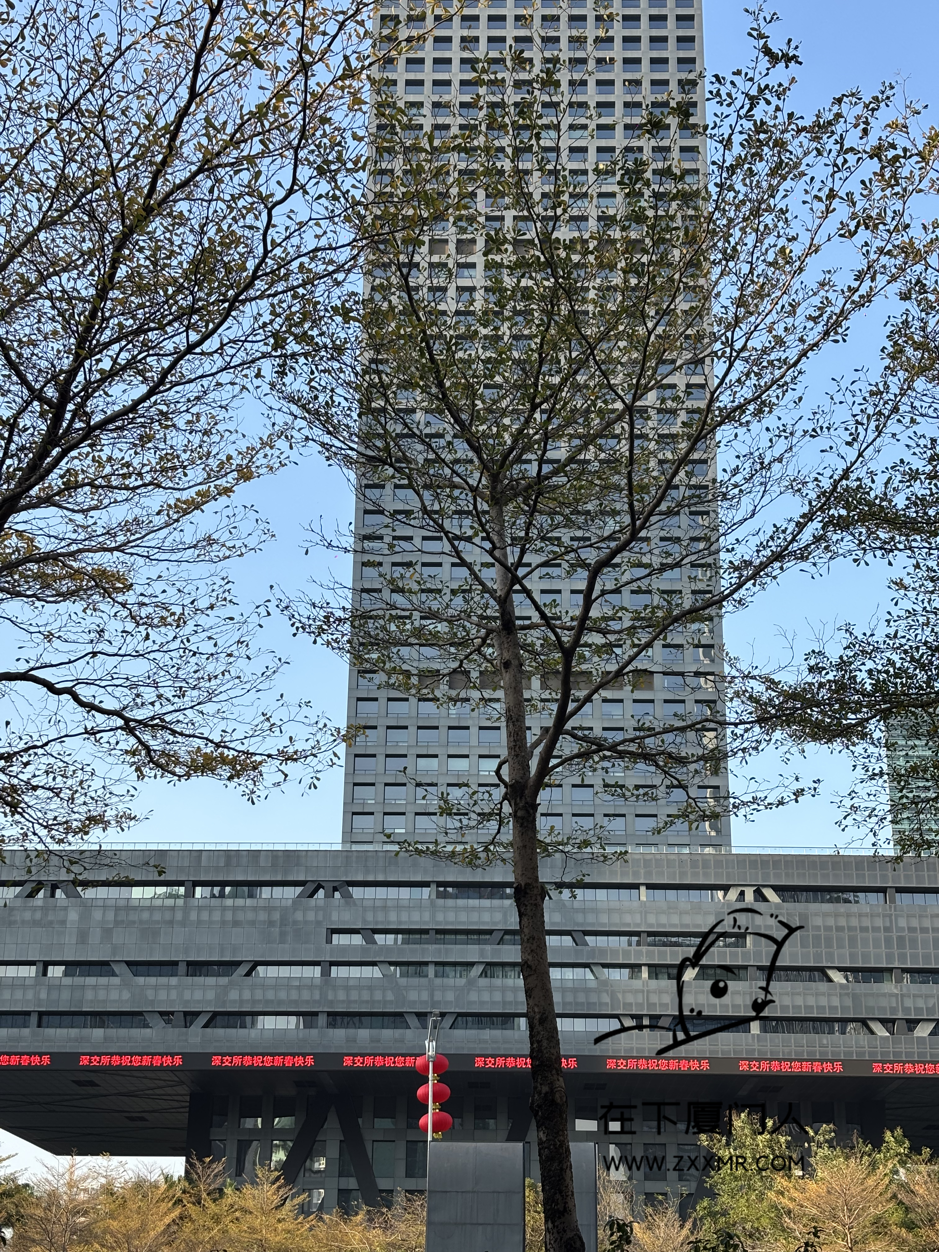 从宝安机场搭乘地铁到福田站,一路上热的要死,仅管地铁上还开着空调制冷,想着出地铁站后找个还在营业的商场买件短袖。出地铁站去商场的途中,路过深圳交易所。