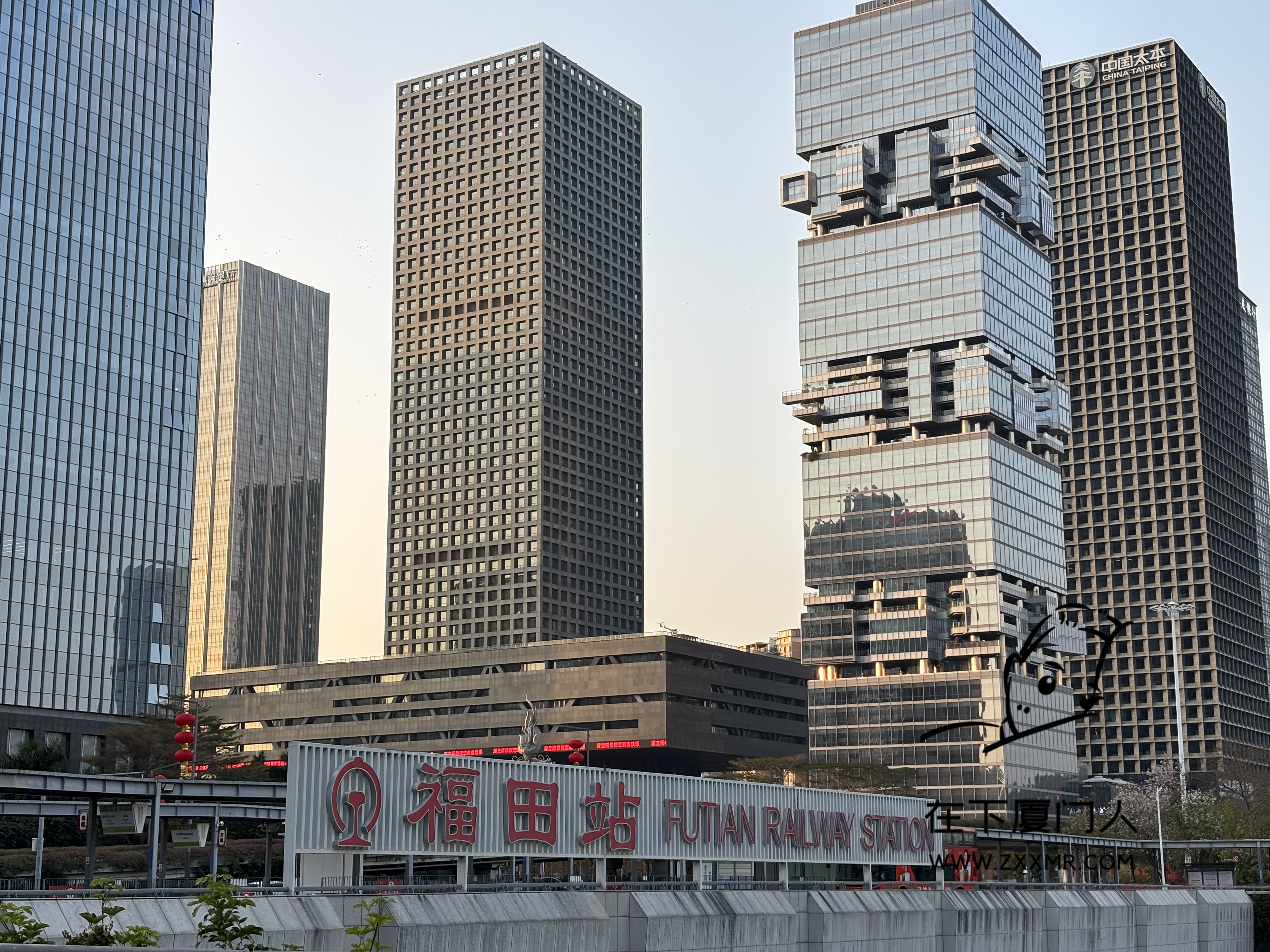 位于深交所和中国太平一侧的奇特外观的建筑便是深圳的基金大厦。