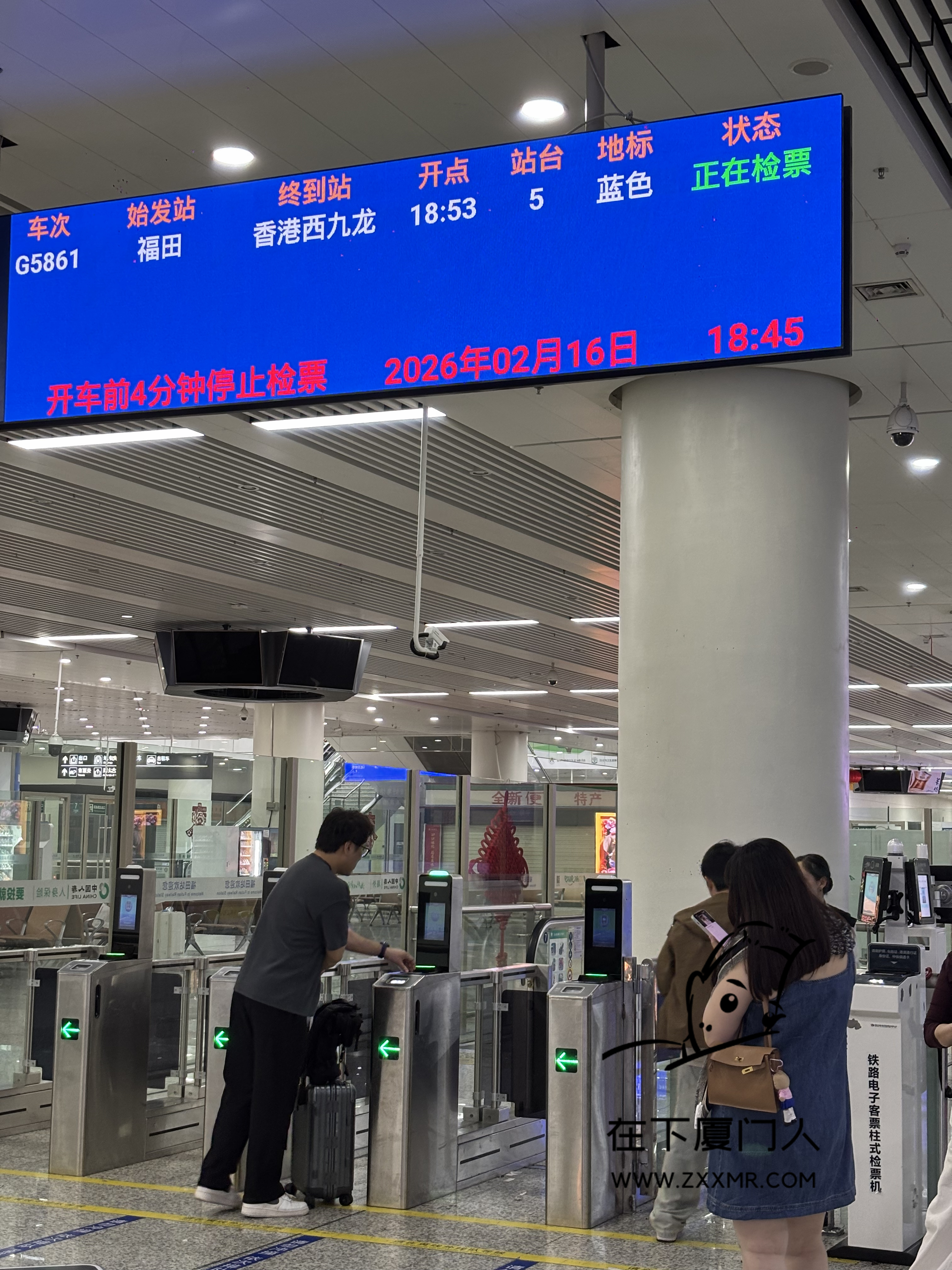 18时45分,因临时买衣服导致比计划推迟一个多小时,才在福田站换乘高铁前往香港西九龙。