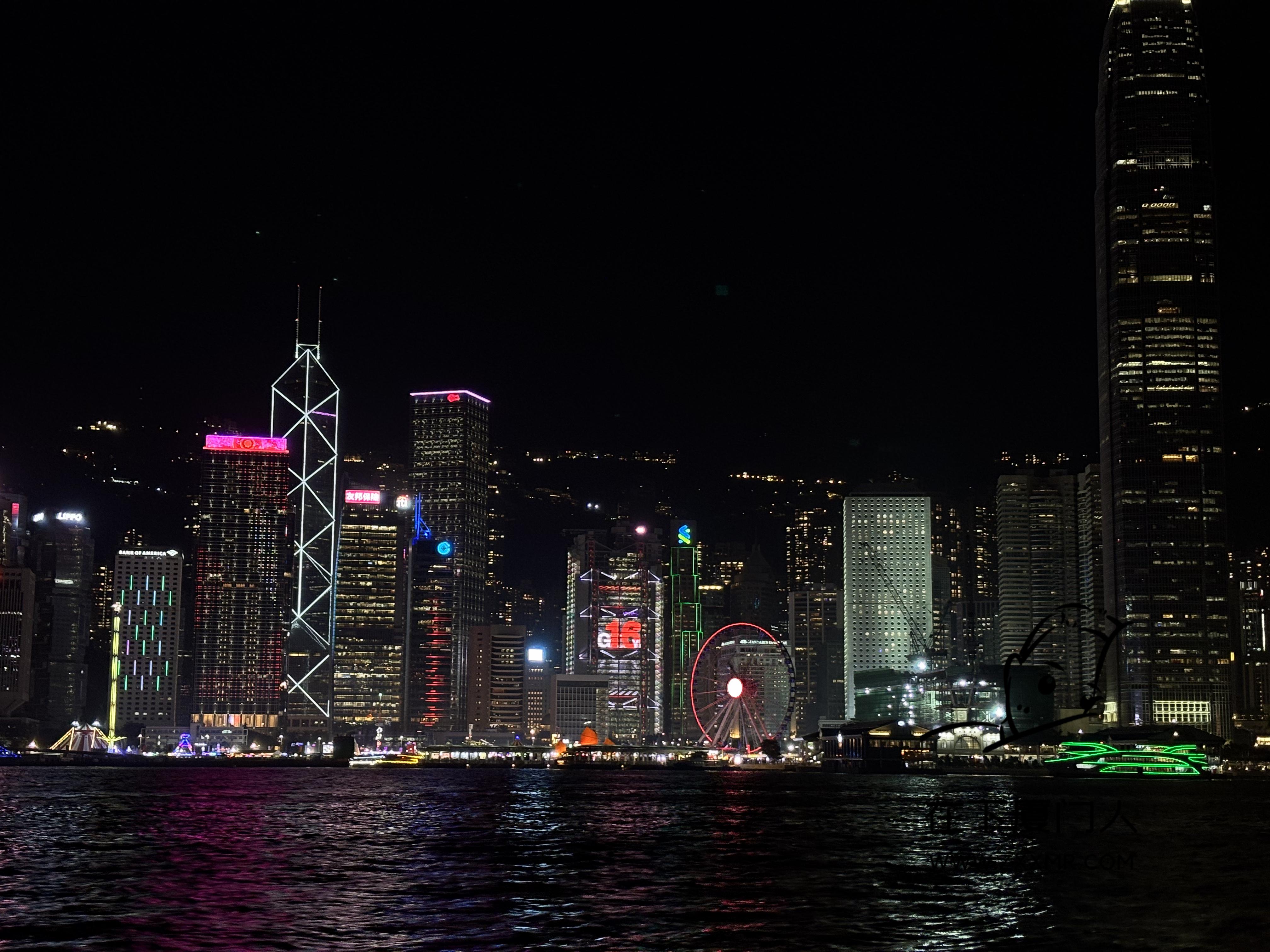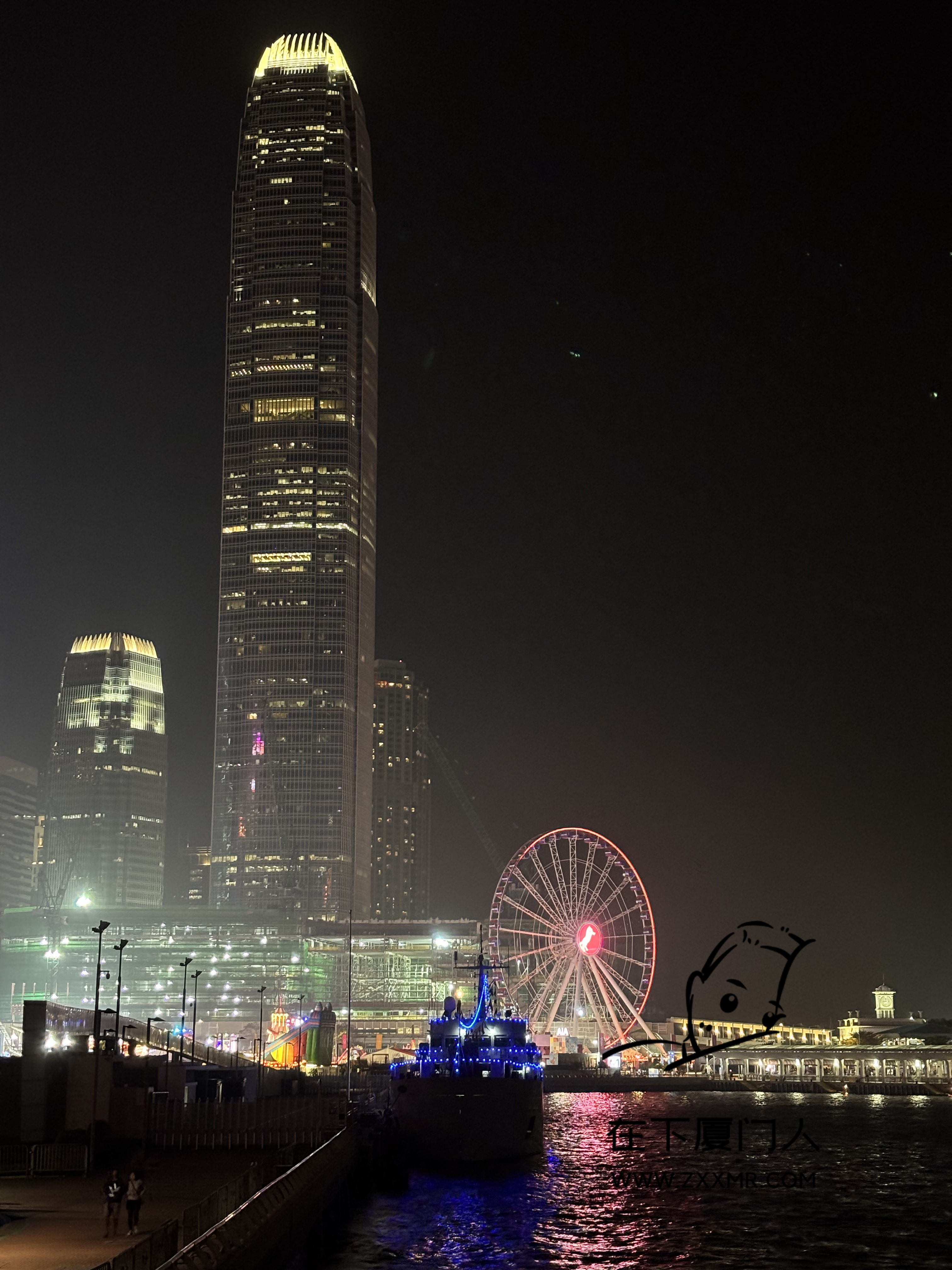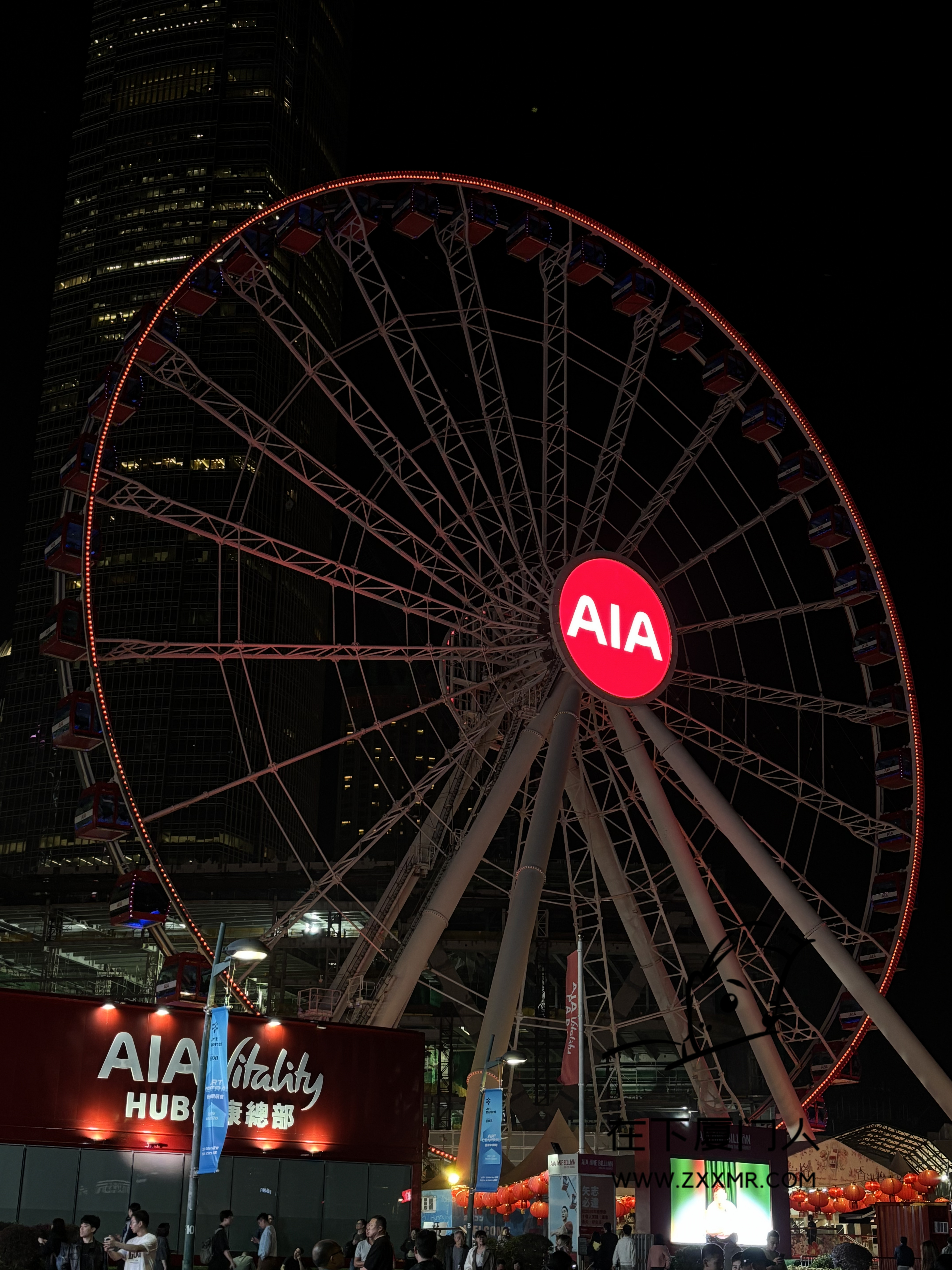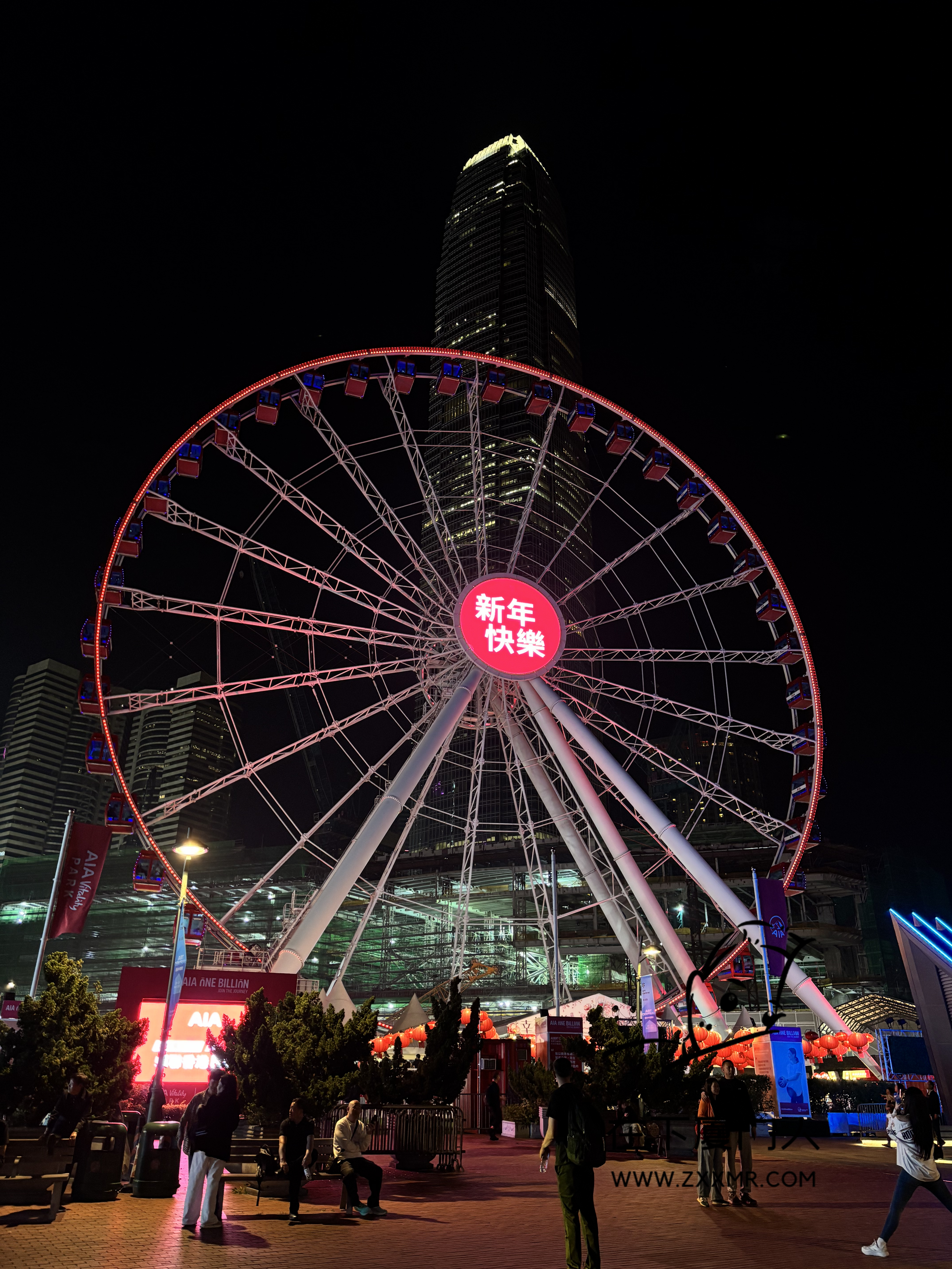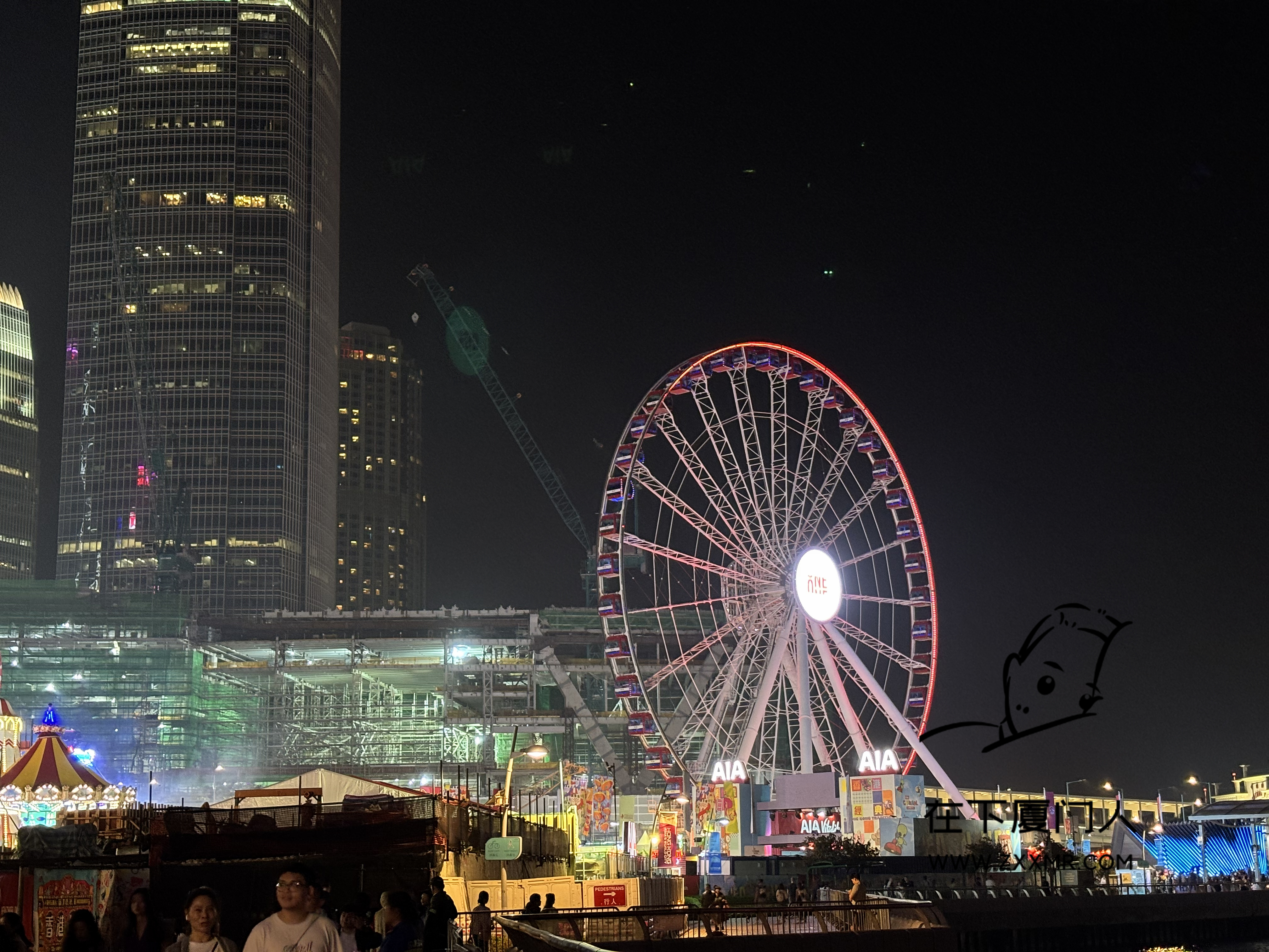 深夜21点,灯火璀璨下的中环摩天轮片区。