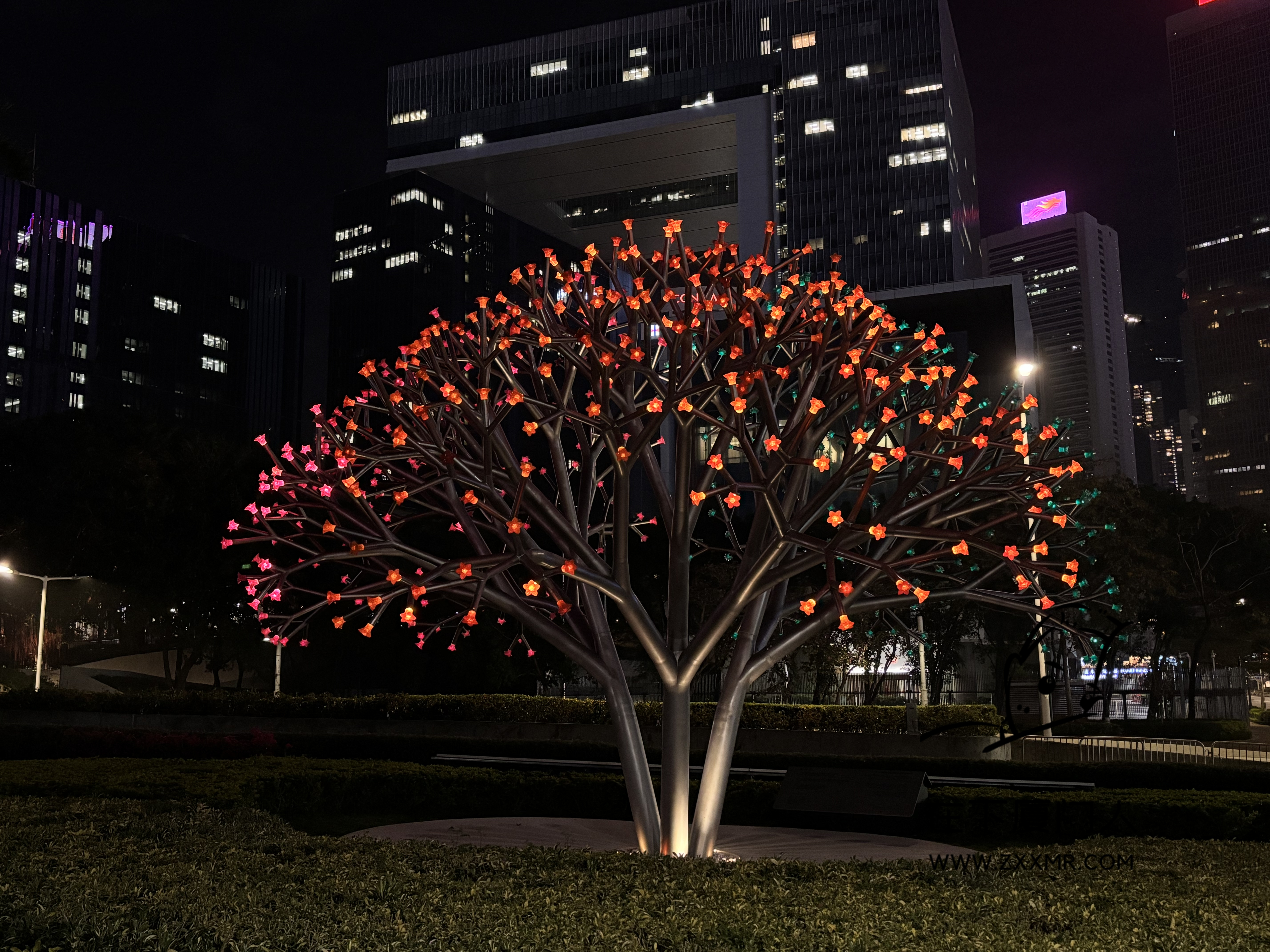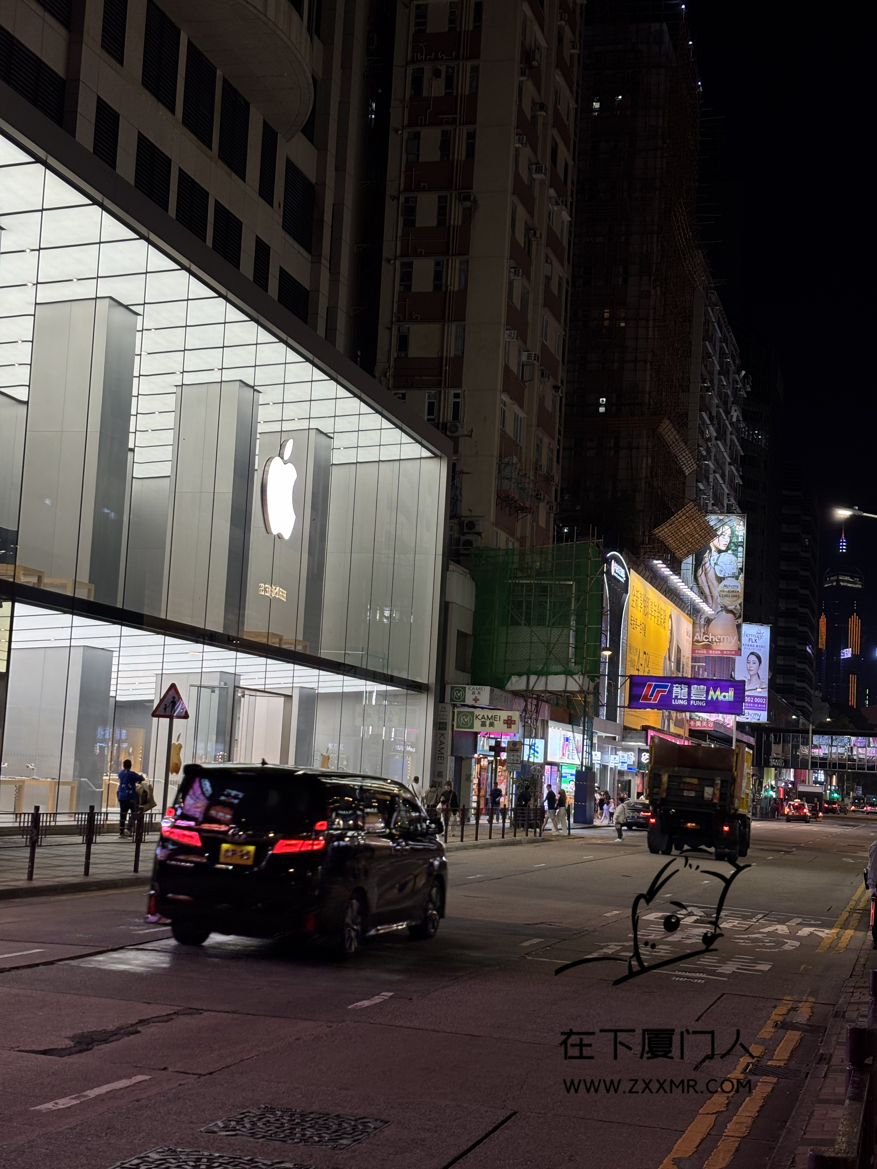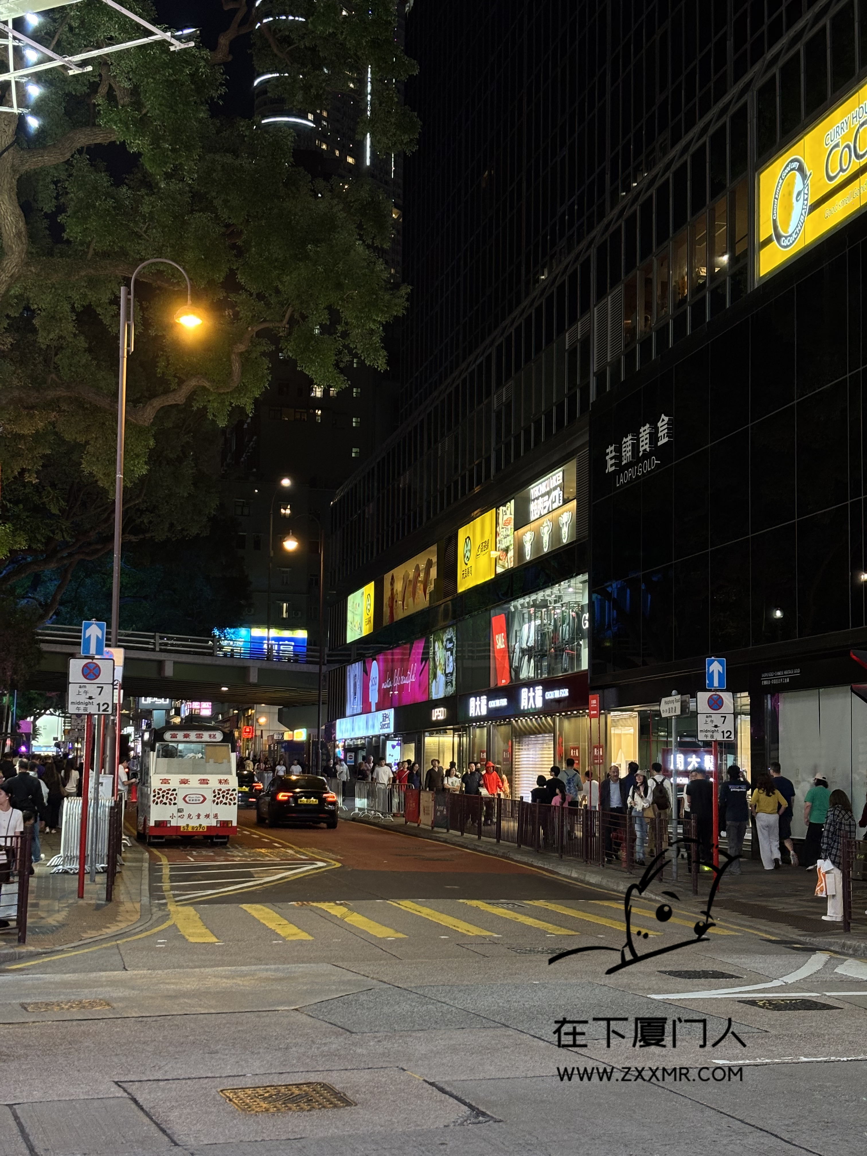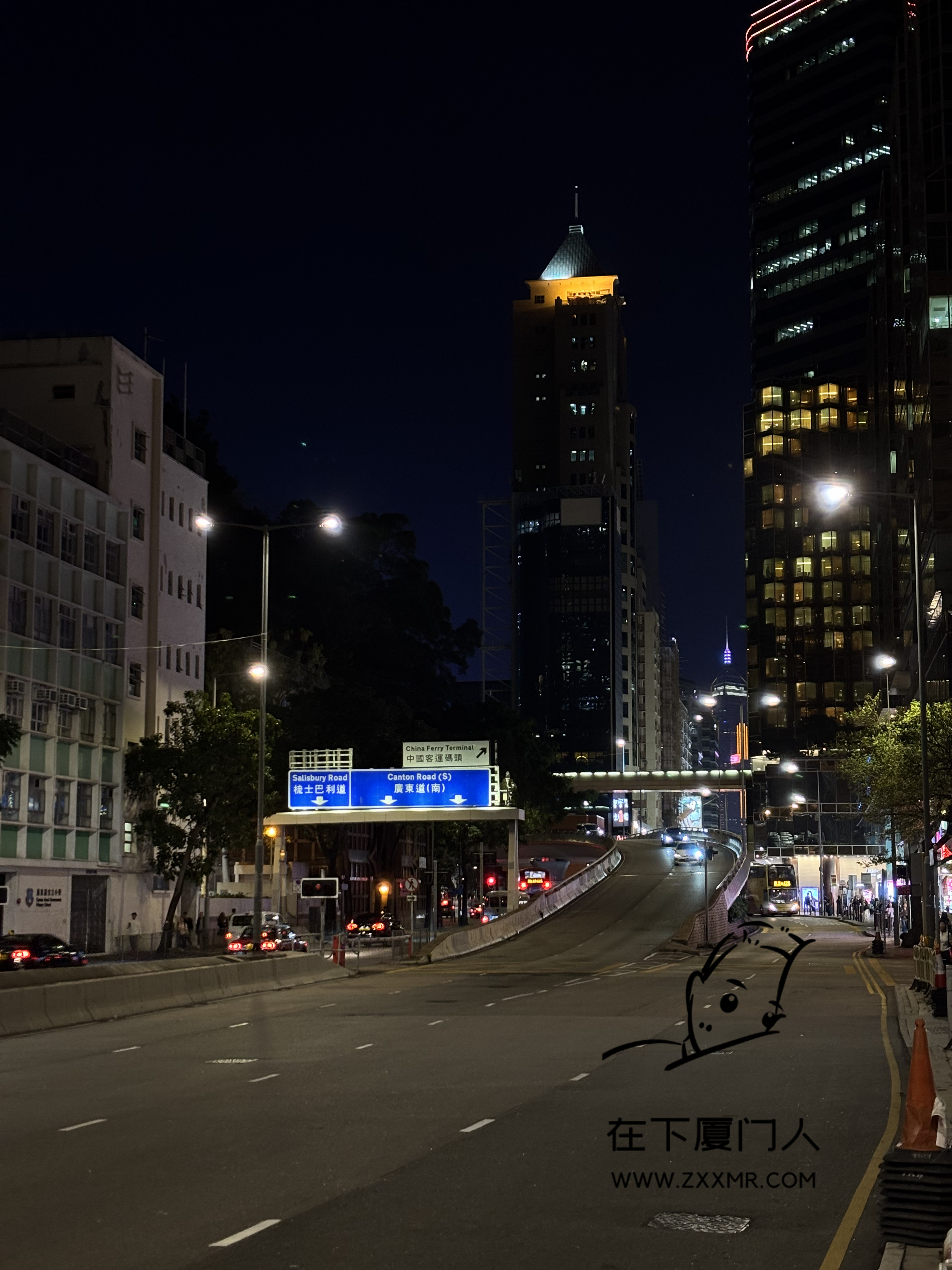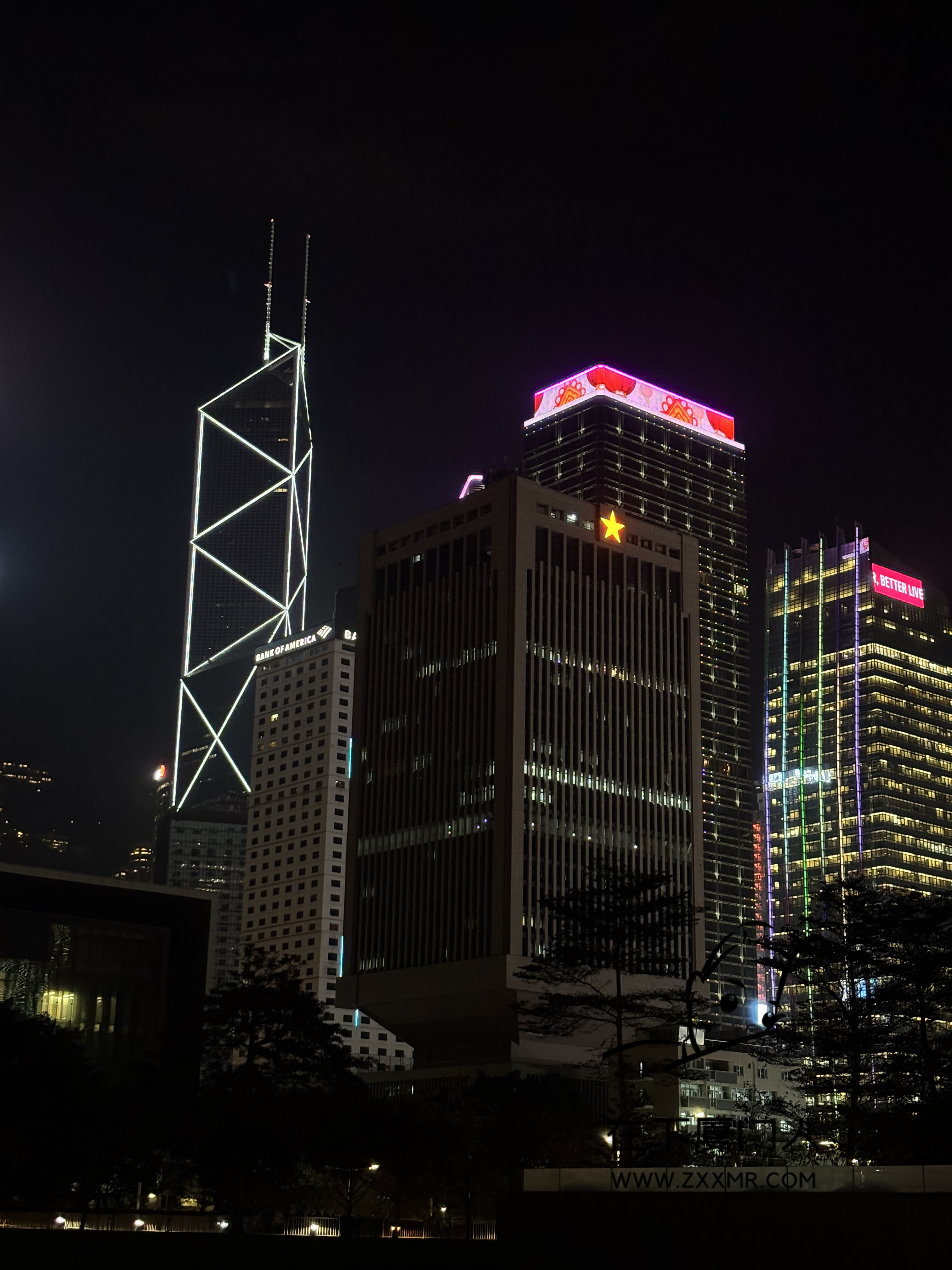 深夜21点,灯火璀璨下的中环摩天轮片区。