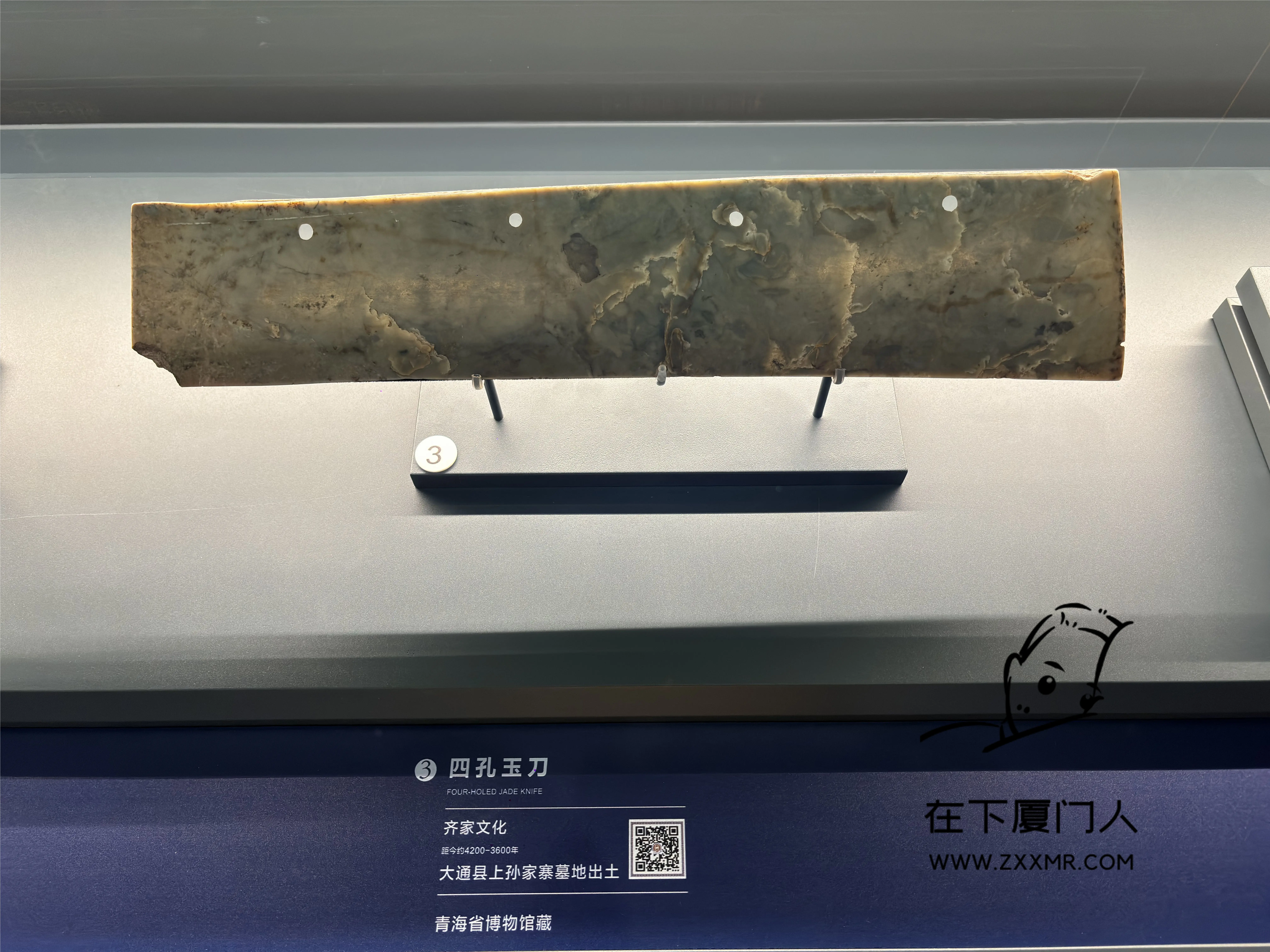 四孔玉刀(齐家文化、距今约4200-3600年、大通县上孙家寨墓地出土、青海省博物馆藏)