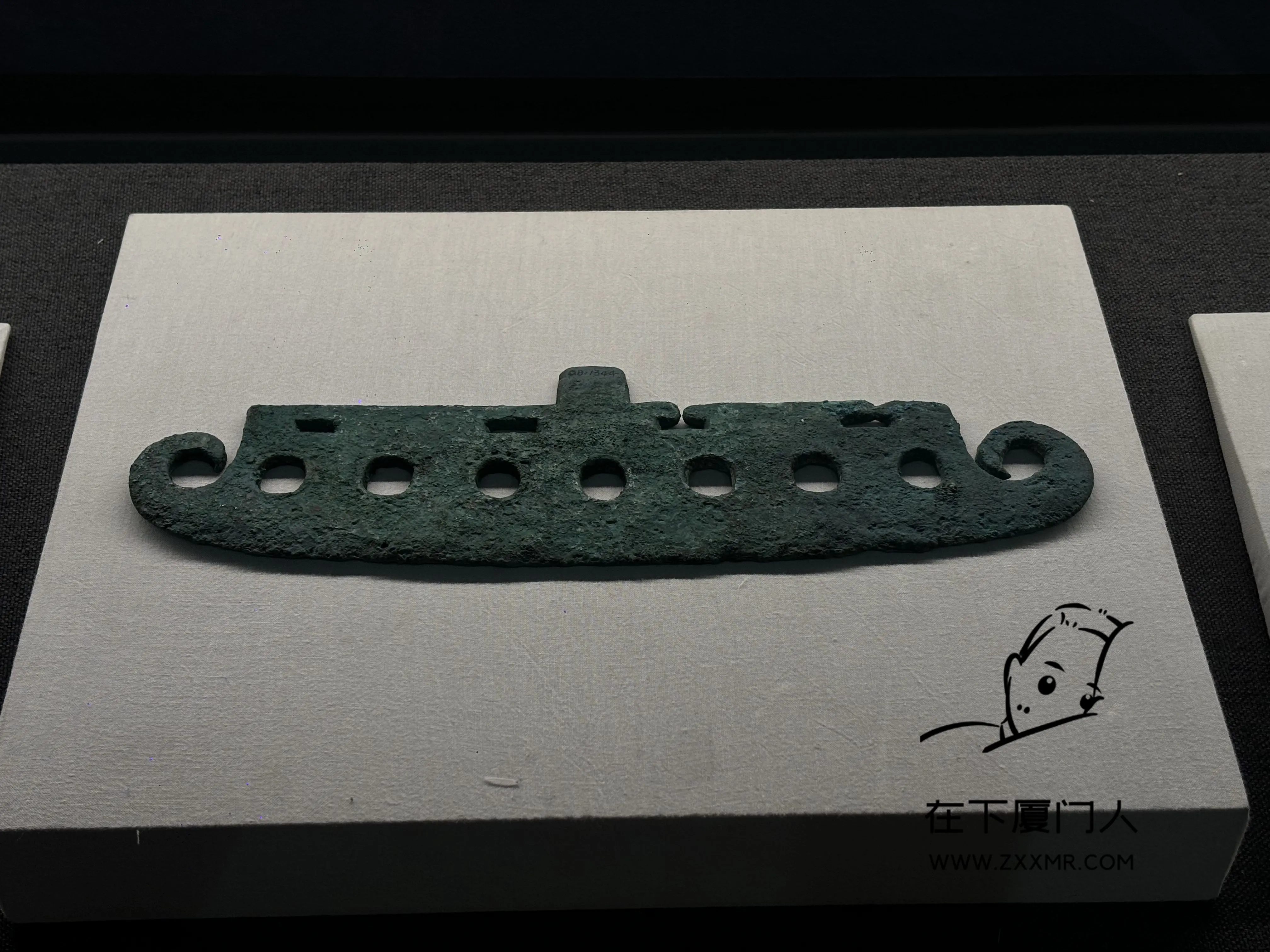 七孔铜钺(卡约文化、距今约3500-2600年、循化县阿哈特拉墓地出土、青海省博物馆藏)