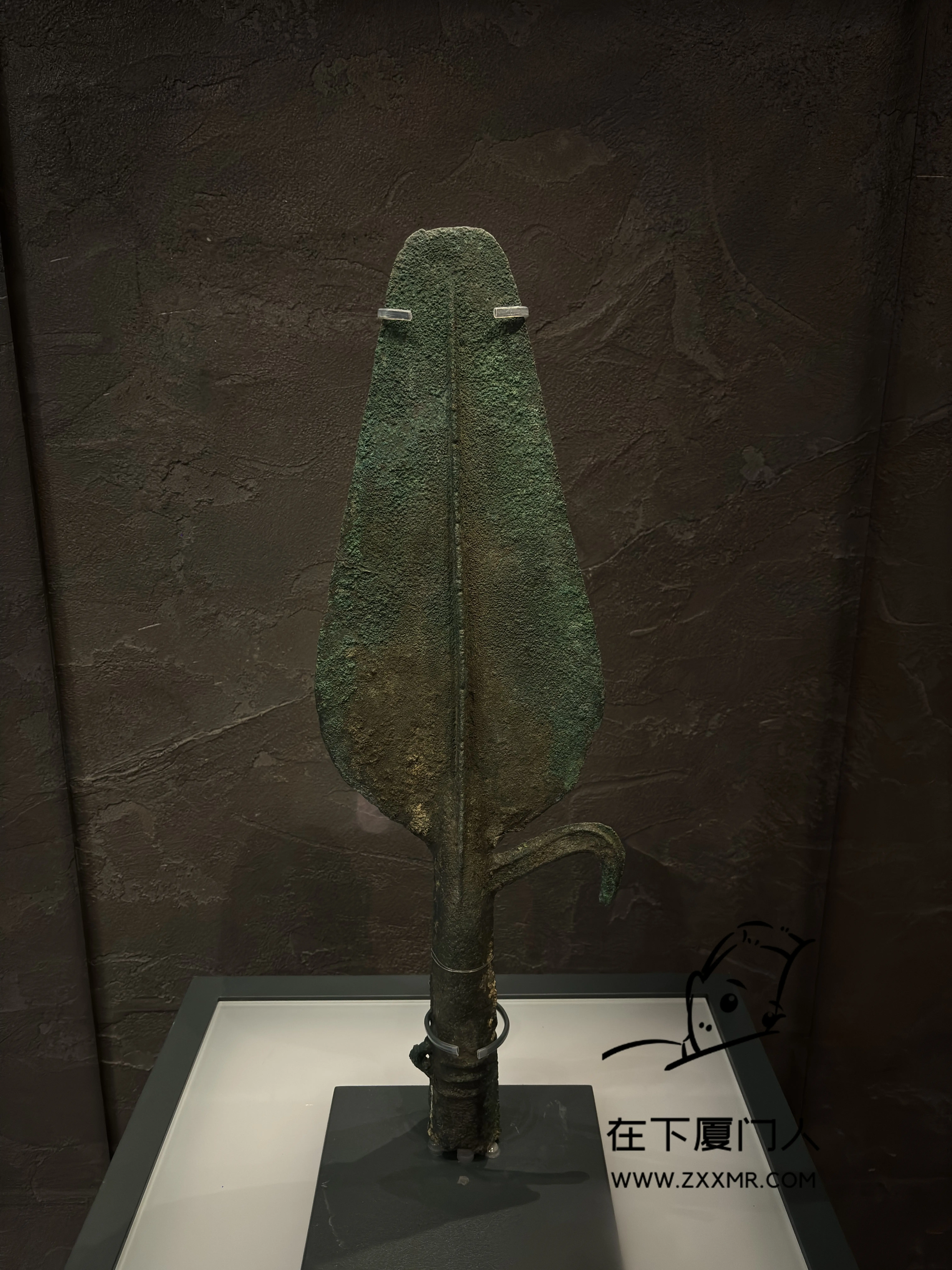 圆銎宽叶倒勾铜矛(齐家文化、距今约4200-3600年、西宁市沈那遗址出土、青海省博物馆藏)