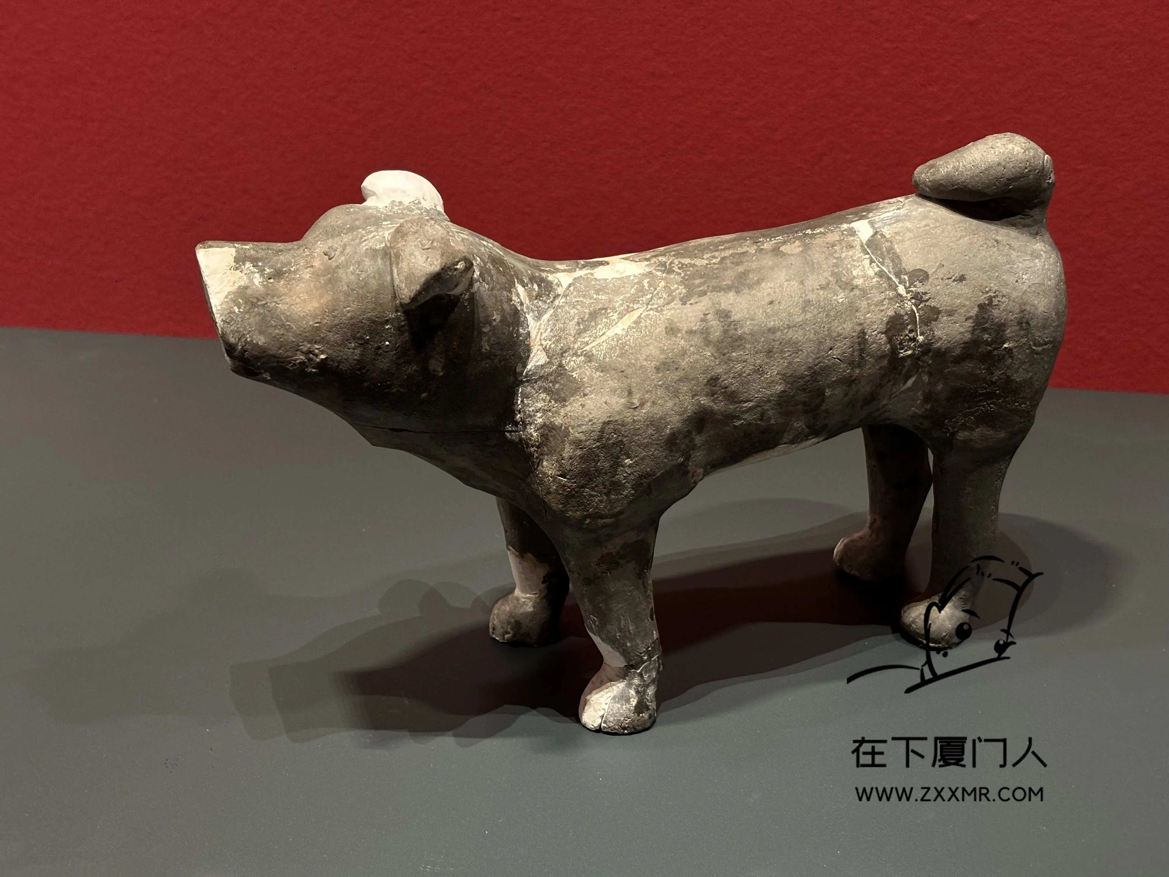灰陶狗(汉、公元前206年-公元220年、民和县下川口汉墓出土、青海省博物馆藏)