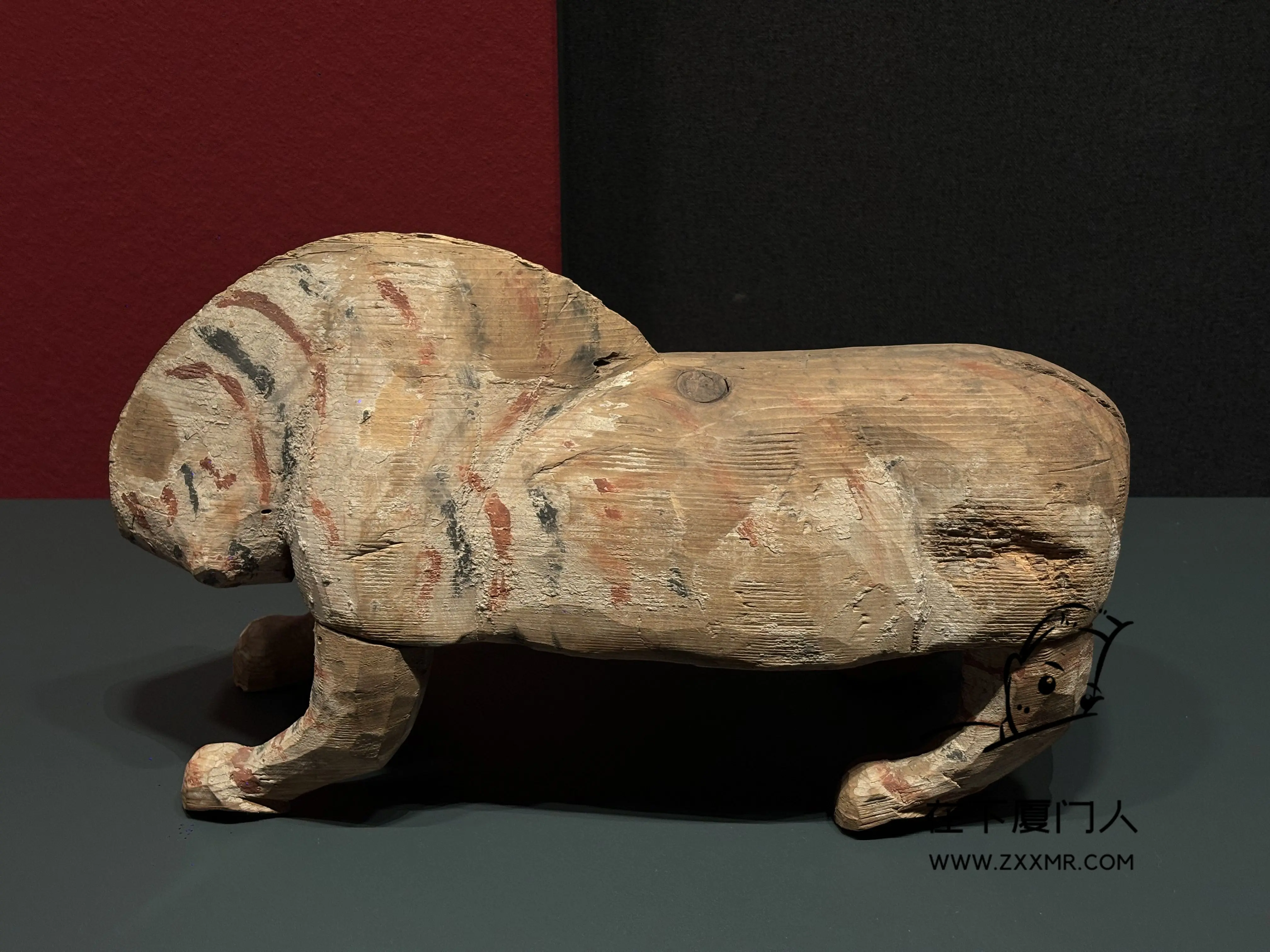 条纹彩绘木镇墓兽(汉、公元前206-公元220年、青海省博物馆藏)