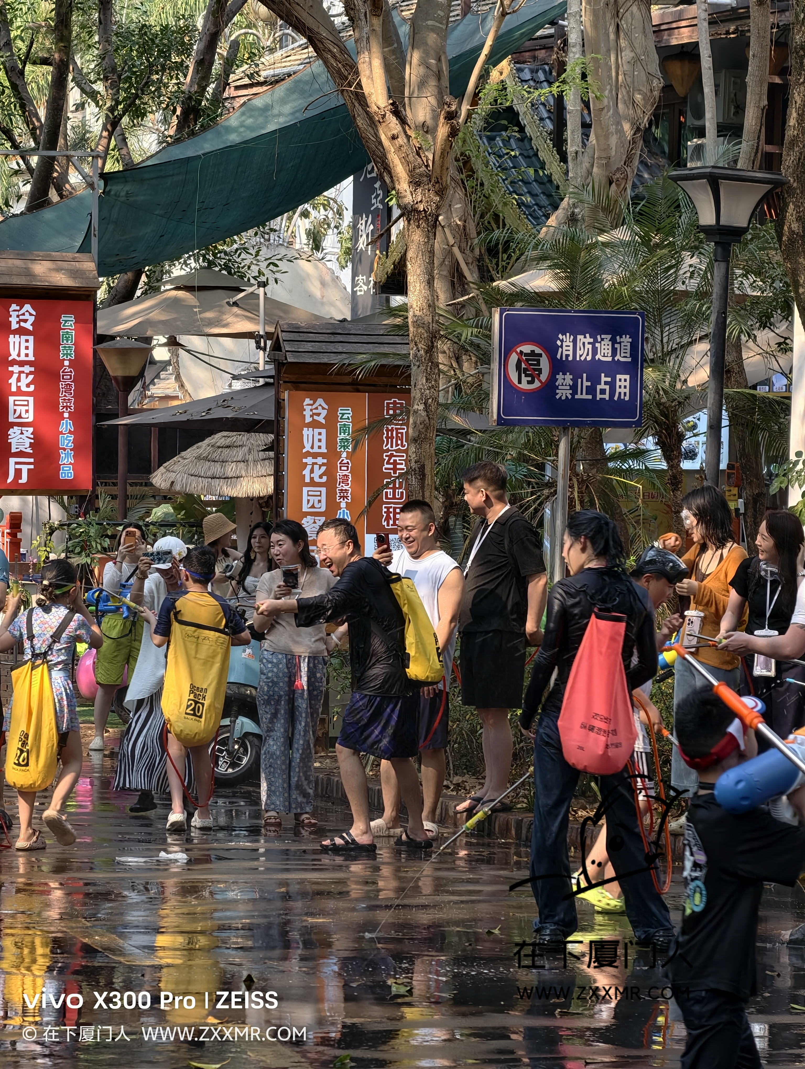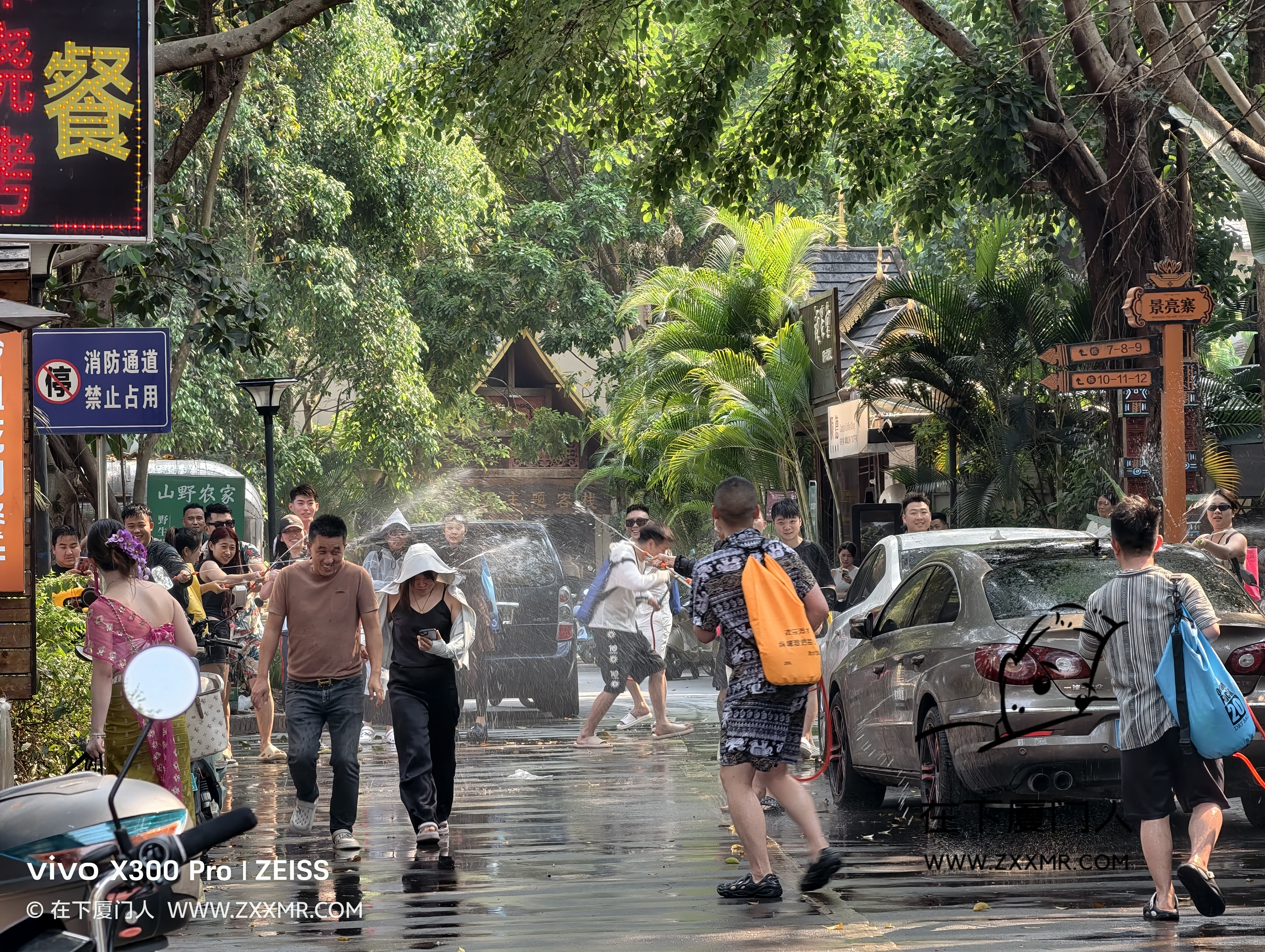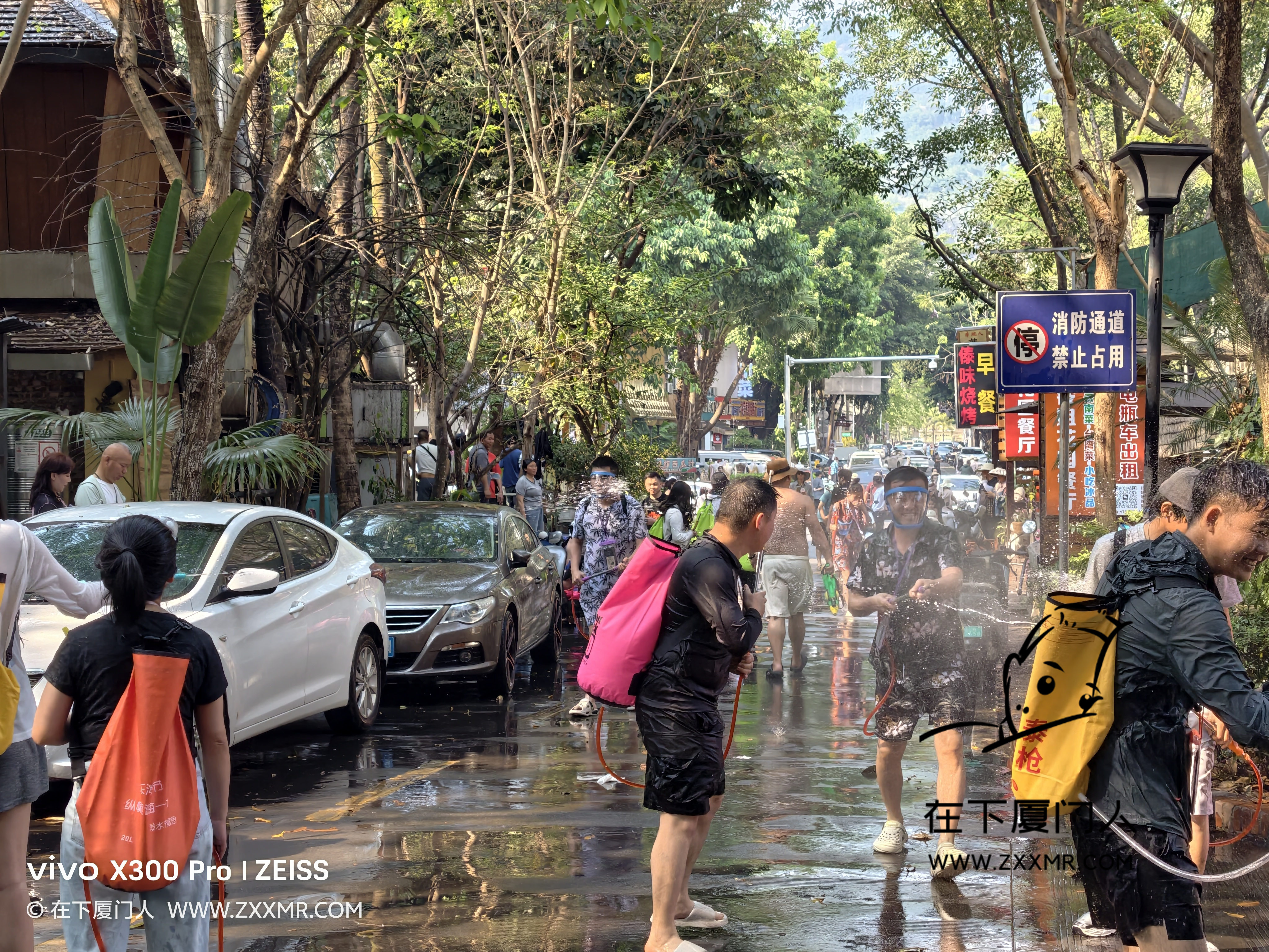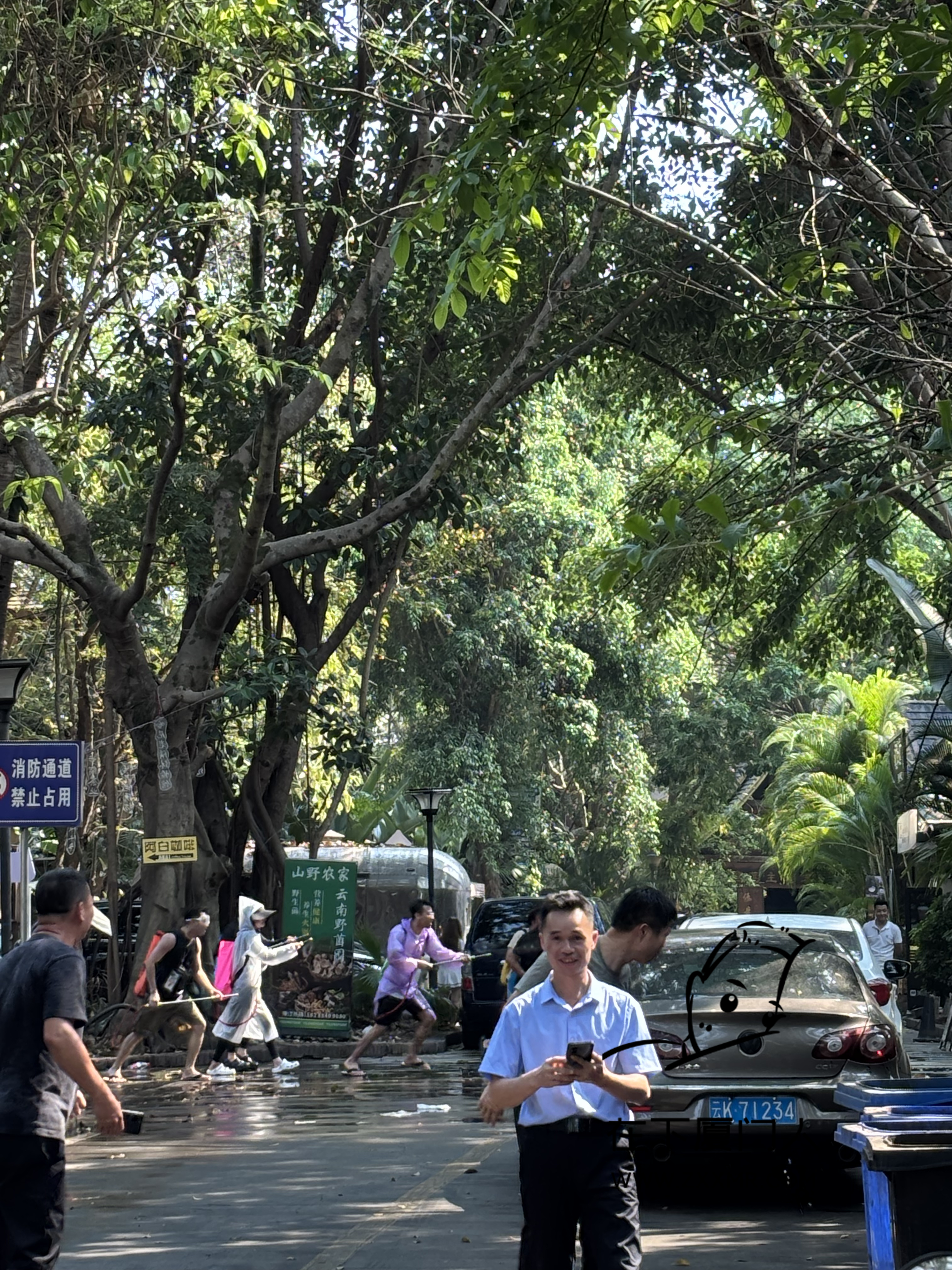 闲逛时,偶遇局部小规模的泼水,由于自己没带装备,且电子设备都没有做防水措施,故只能远距离观战。