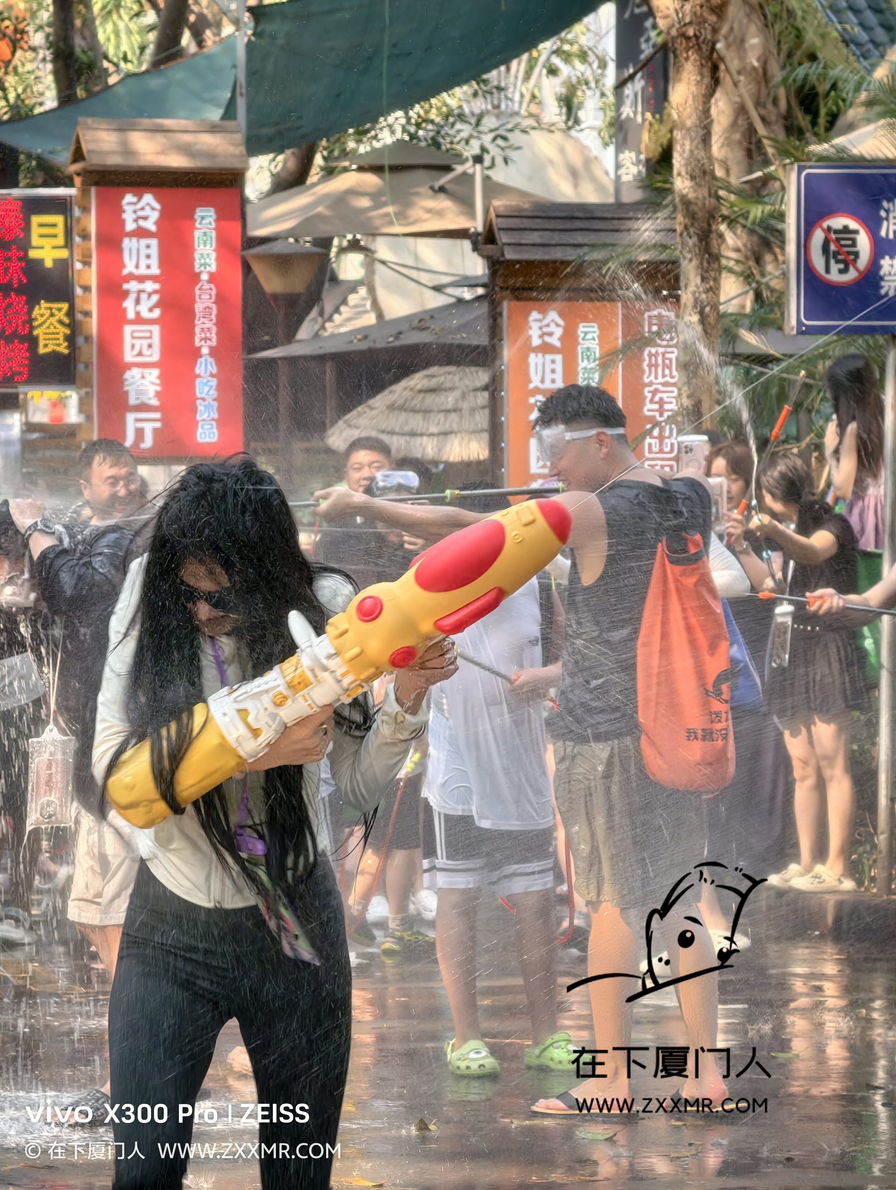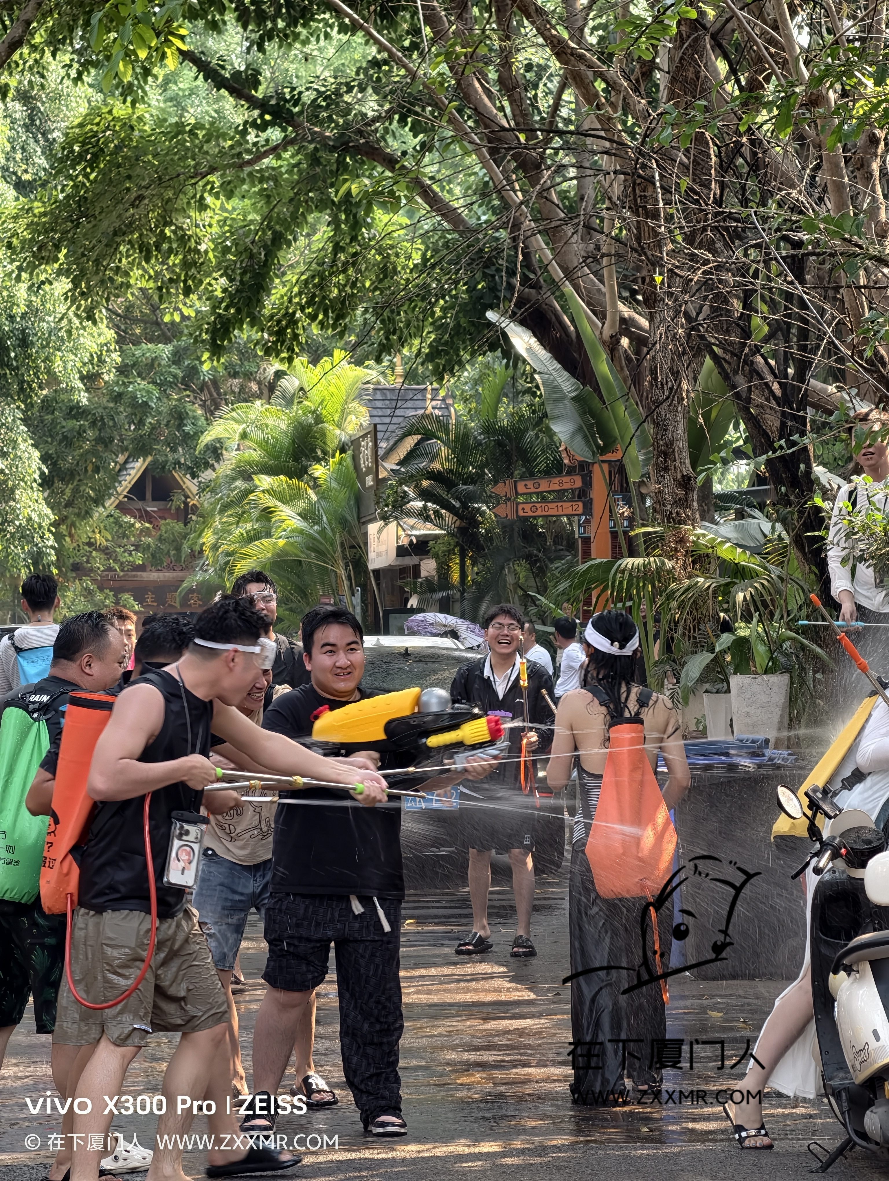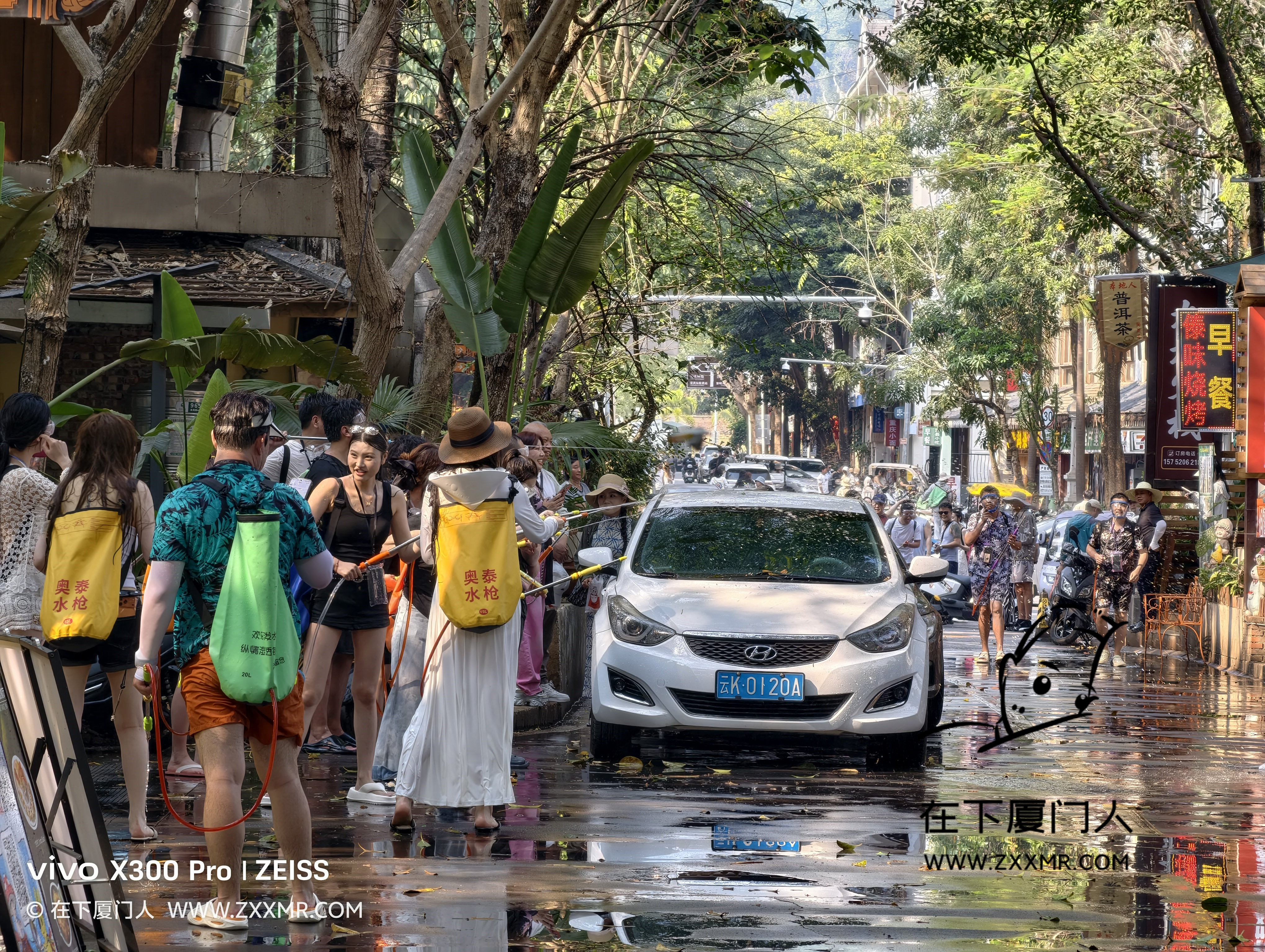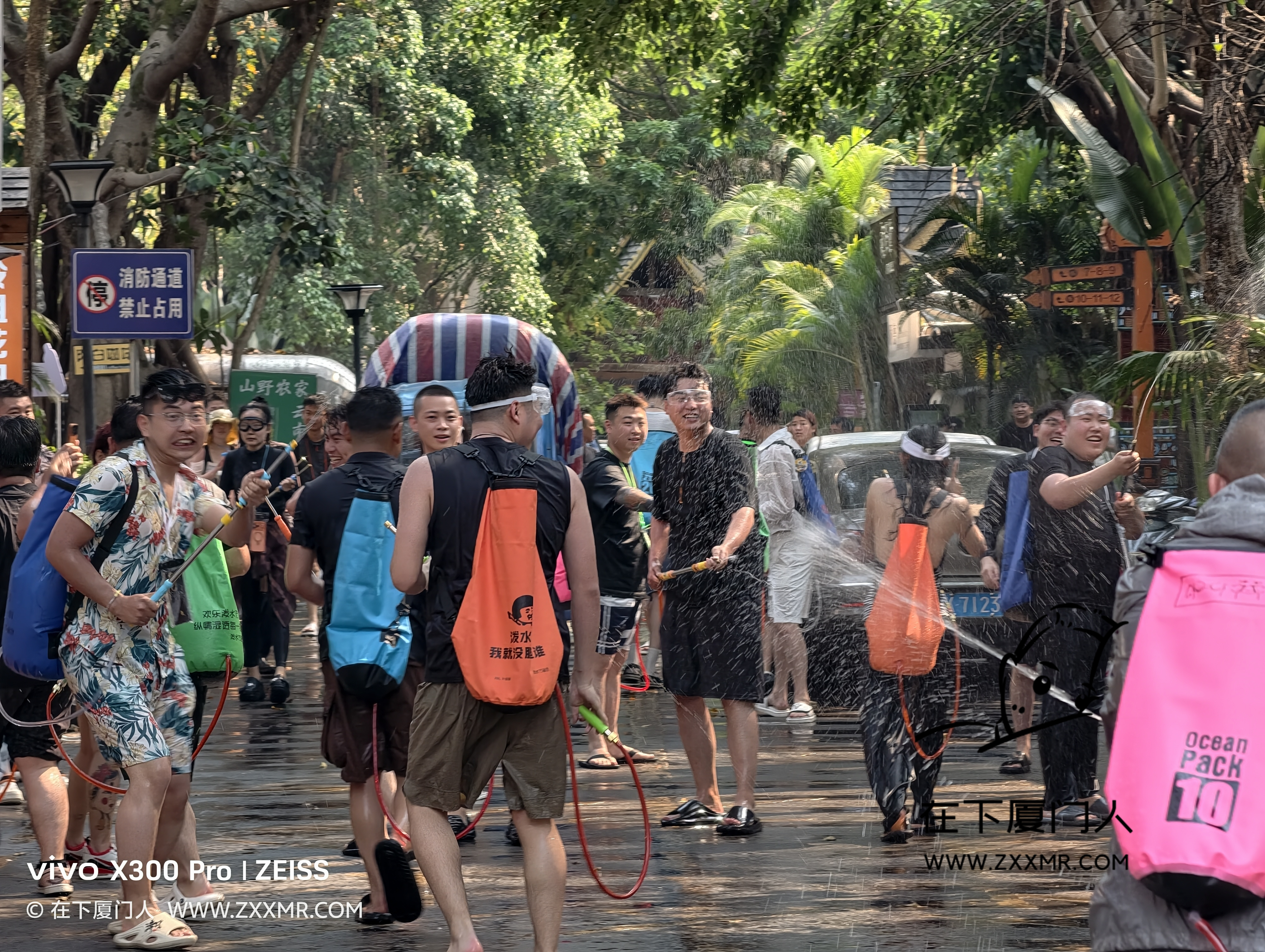 闲逛时,偶遇局部小规模的泼水,由于自己没带装备,且电子设备都没有做防水措施,故只能远距离观战。