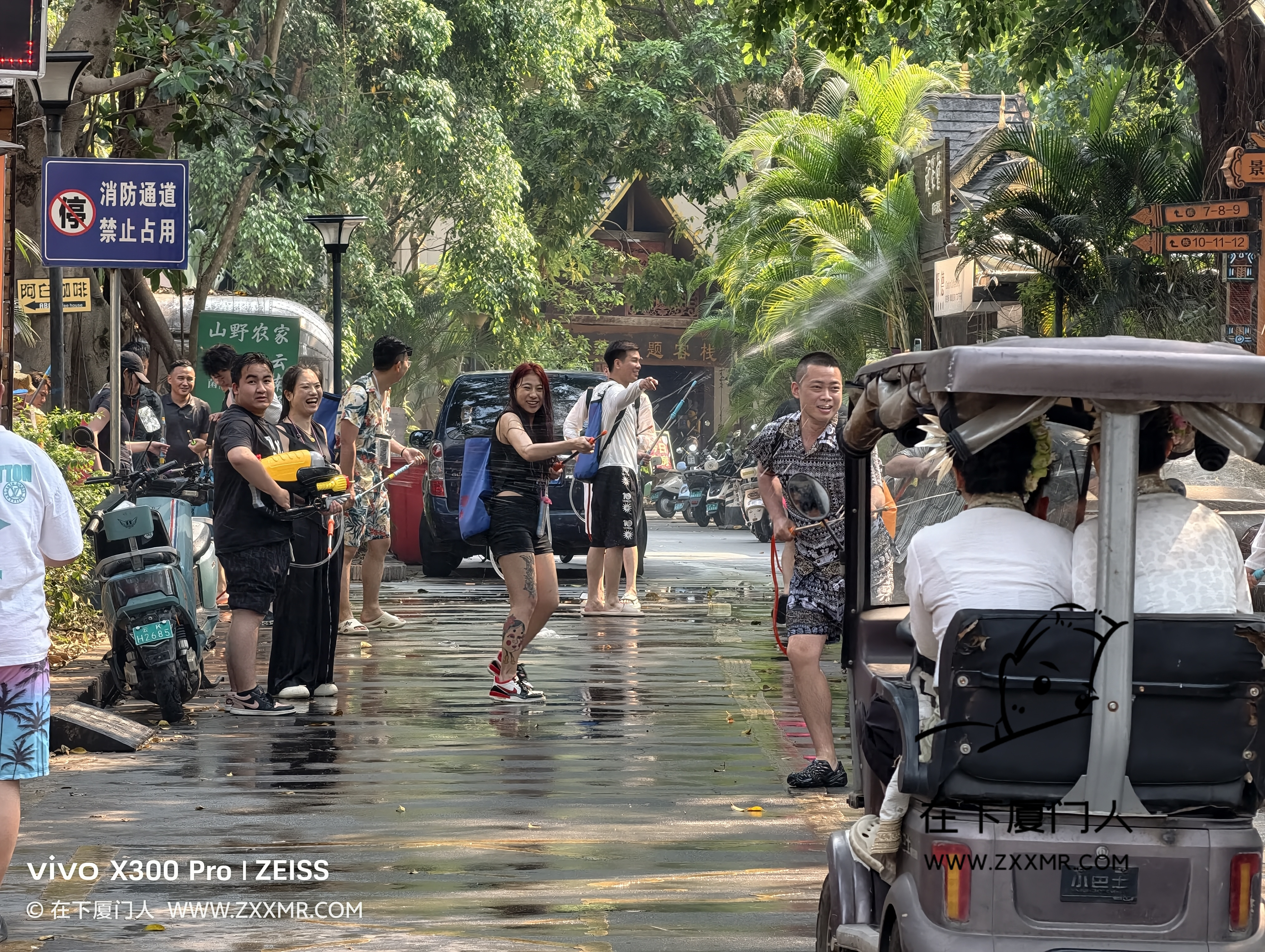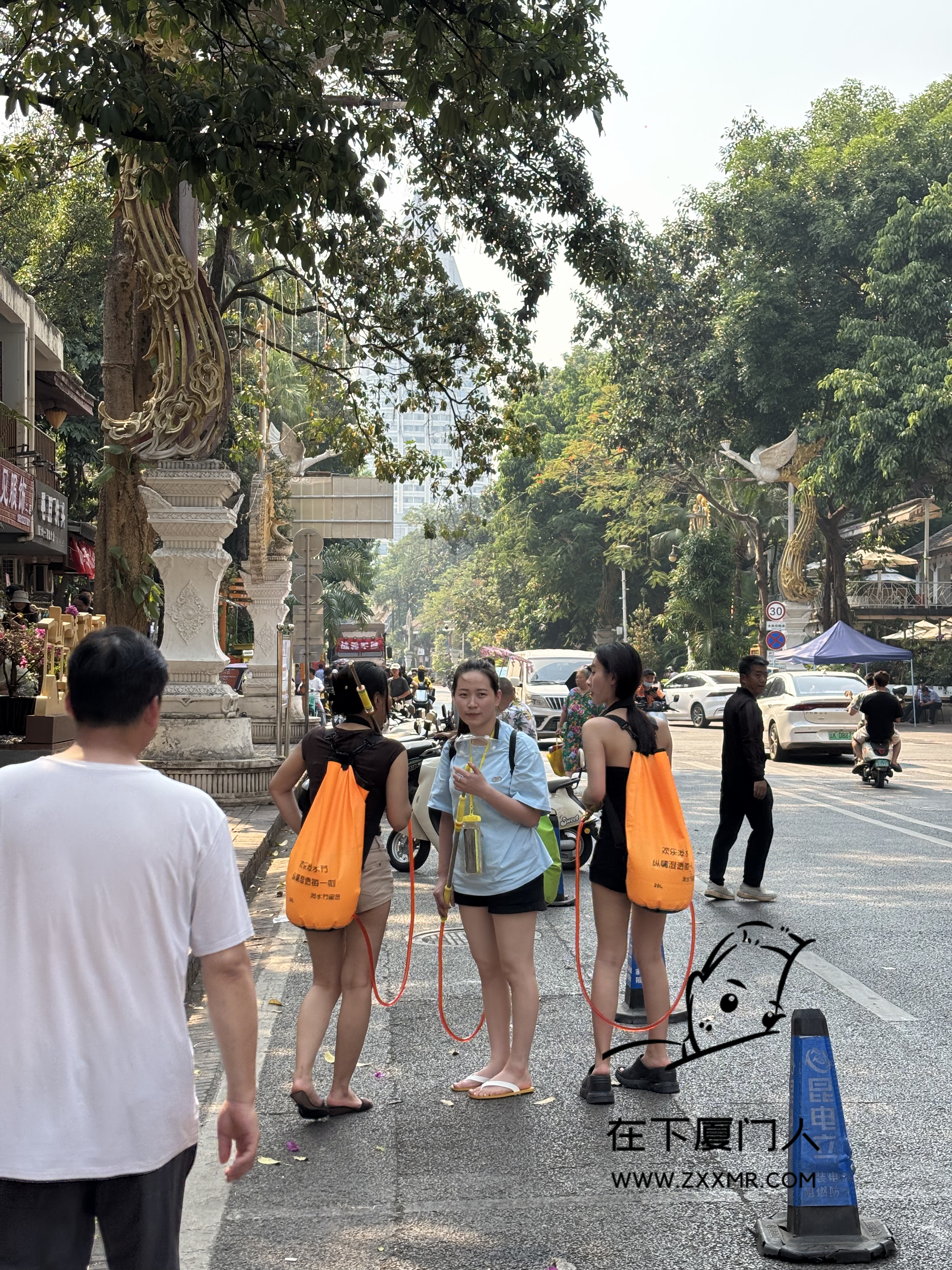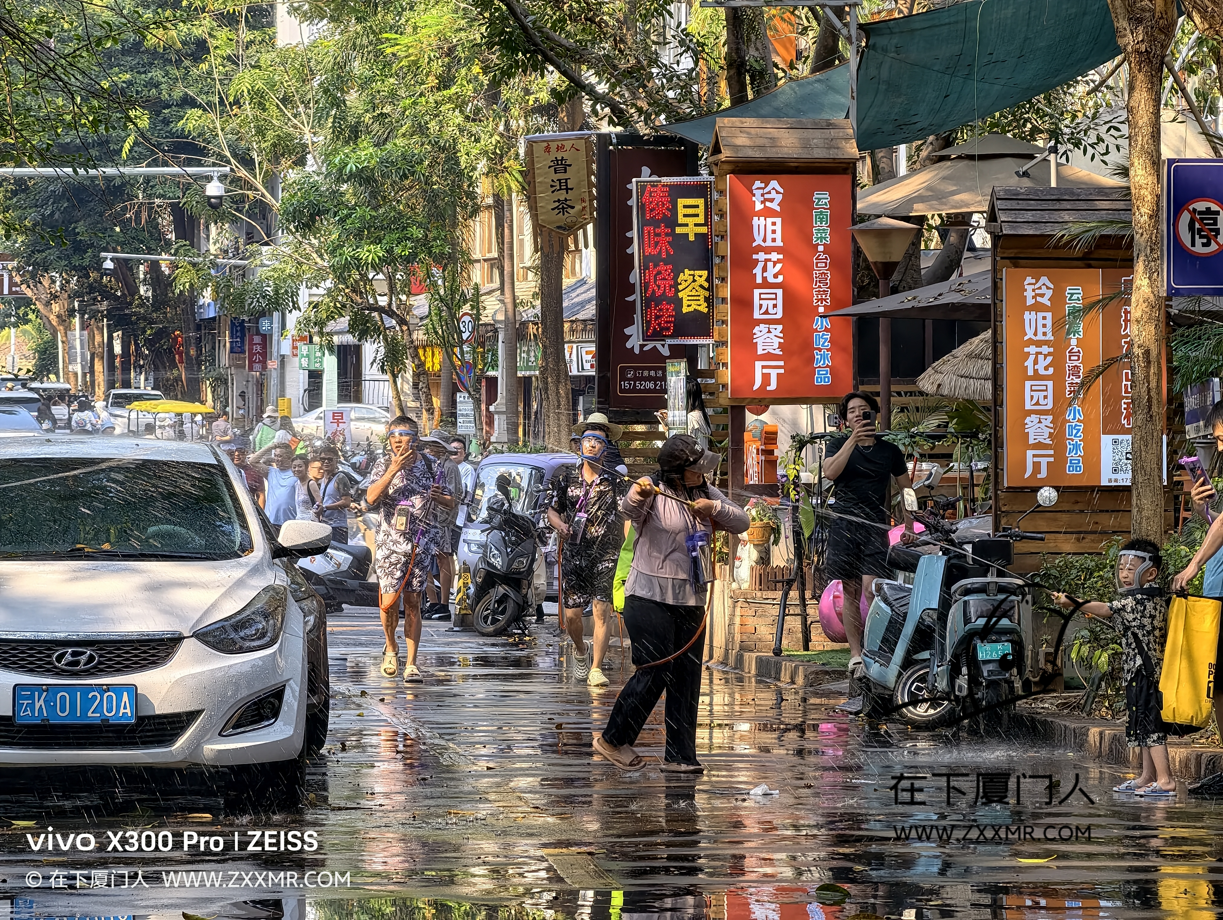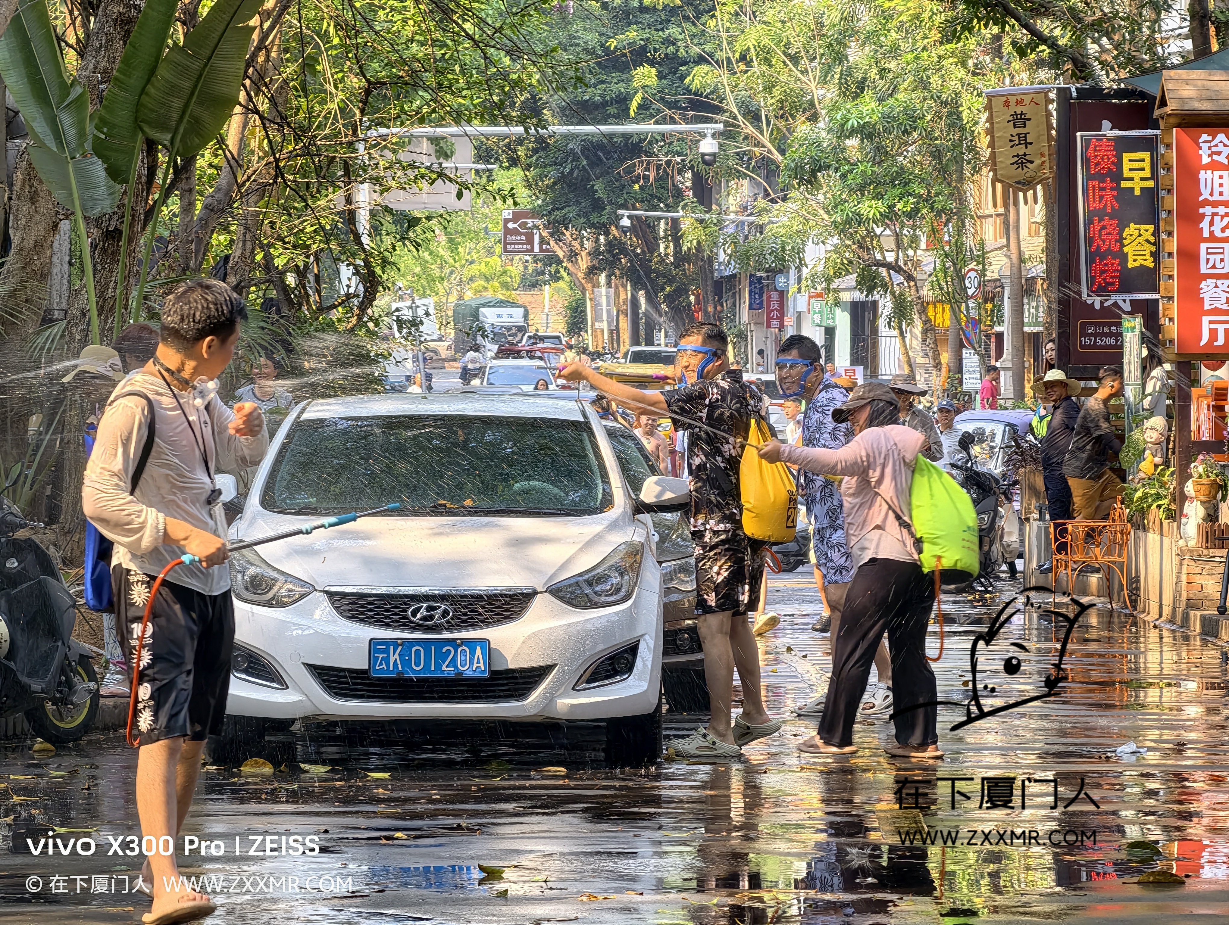闲逛时,偶遇局部小规模的泼水,由于自己没带装备,且电子设备都没有做防水措施,故只能远距离观战。