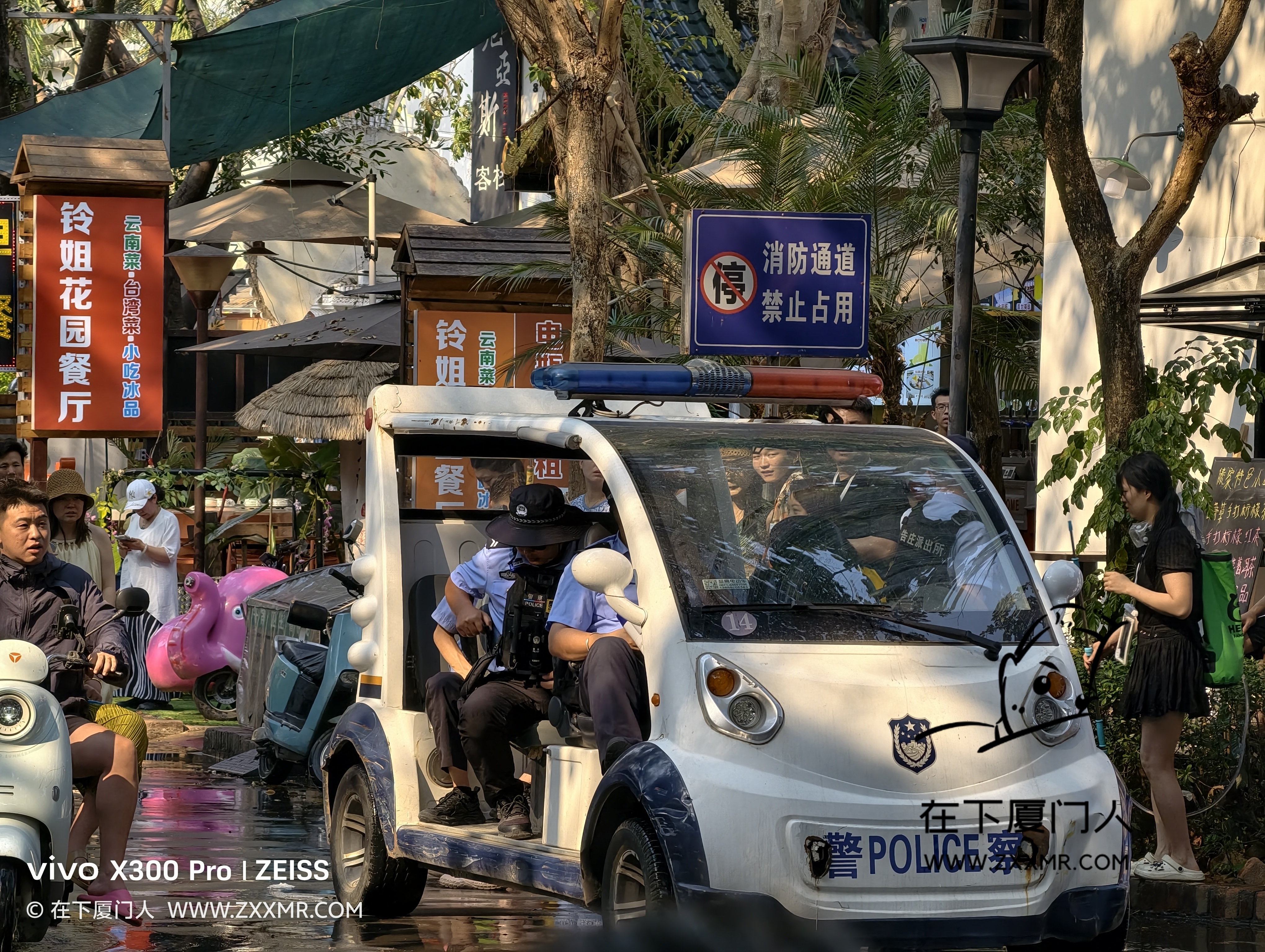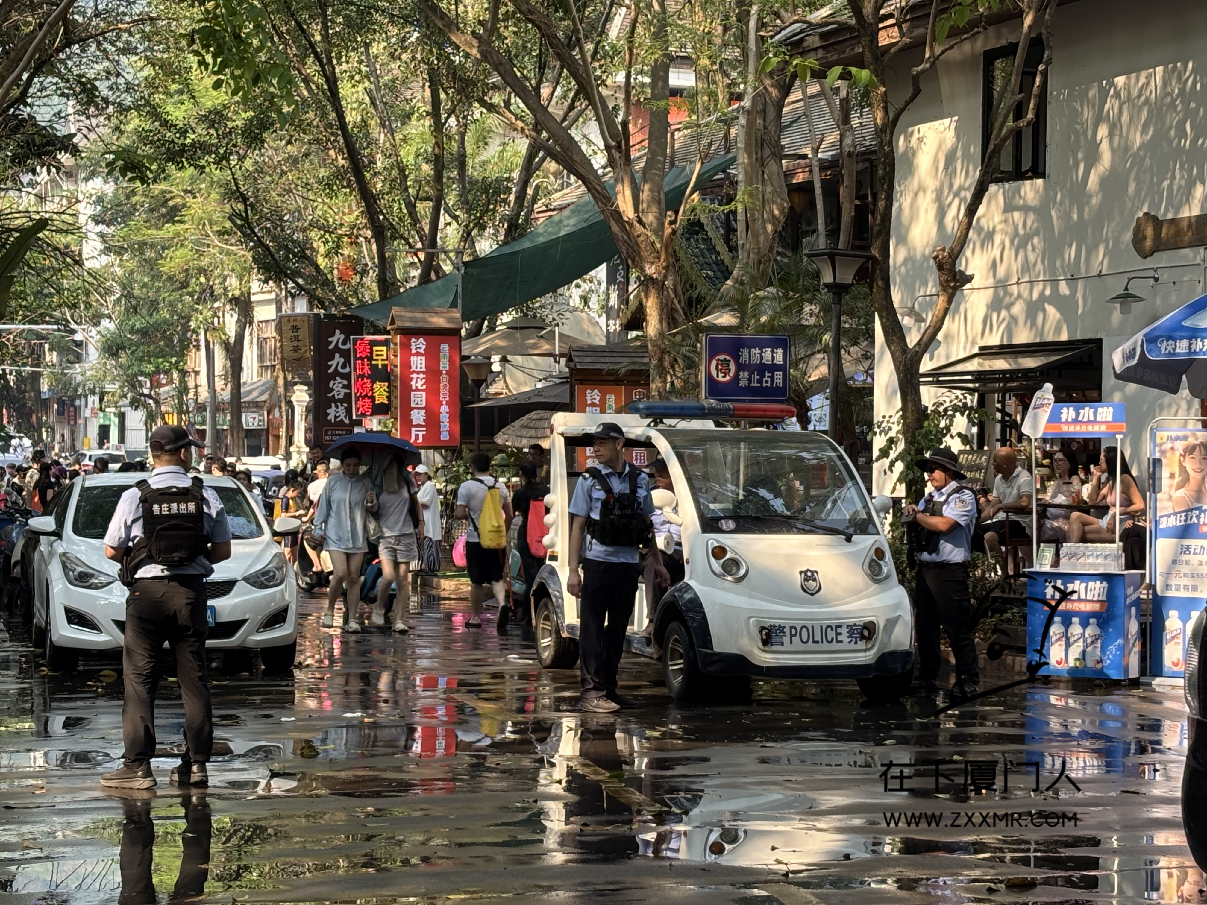 分布式执勤点的民警距离战场只有二三十米,一开始都默许泼水,当越来越多的人加入泼水队伍中,场面就出现一发不可收拾的局面,这时为保障道路游客的出行安全,民警就不得不出面干预泼水。